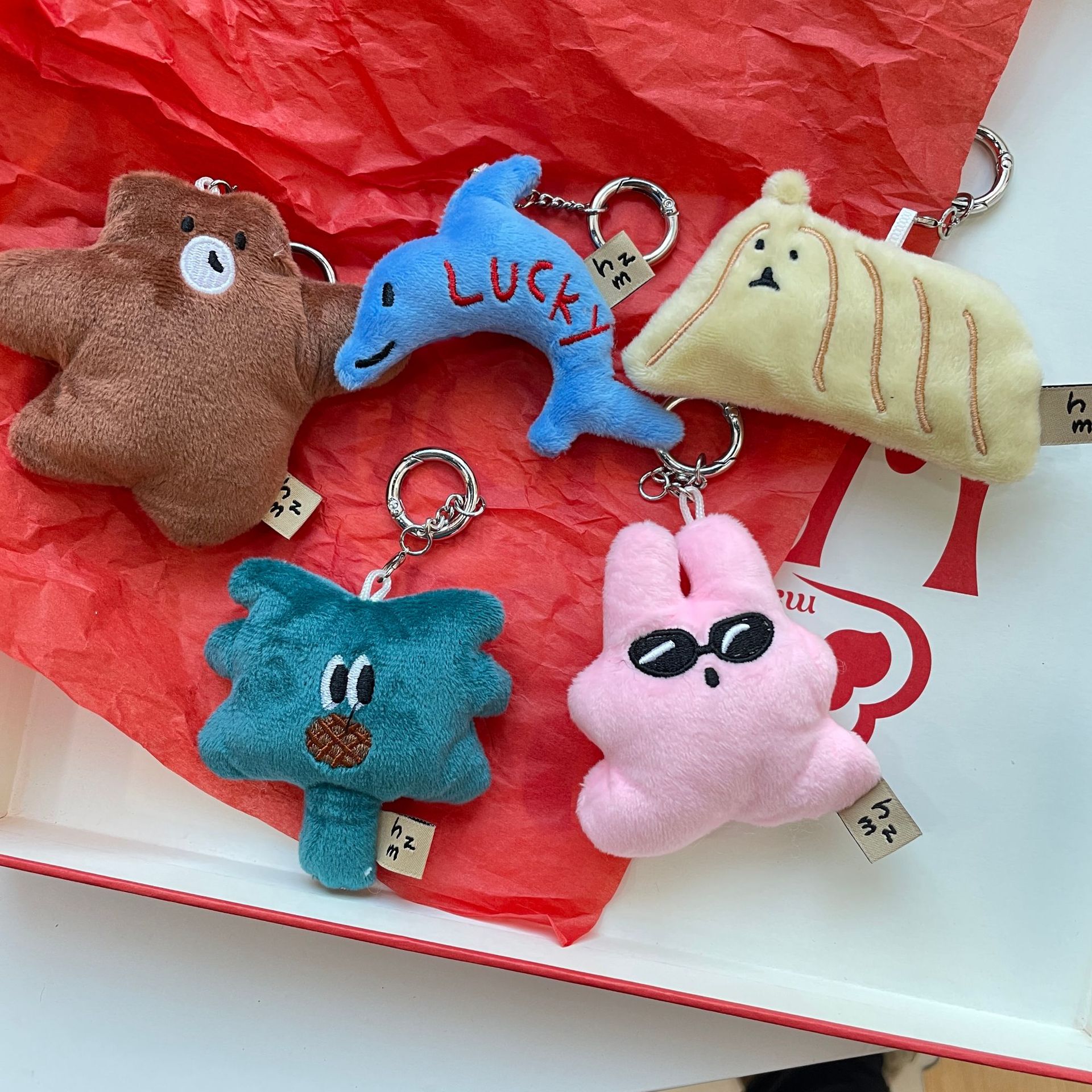 | nameOriginal | ins Korean sunglasses rabbit pendant hug bear dolphin plush doll bag decorative gift key ring GJ207 |