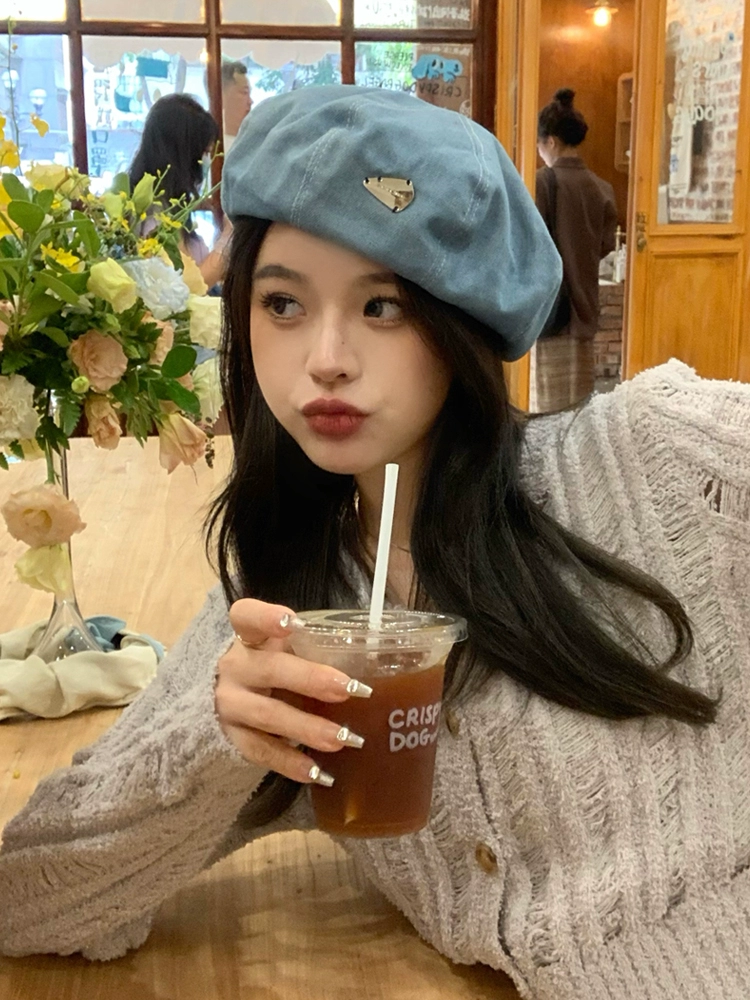 | nameOriginal | ins label washed denim beret women's autumn and winter Korean version of literary and artistic retro face-showing small octagonal painter hat |