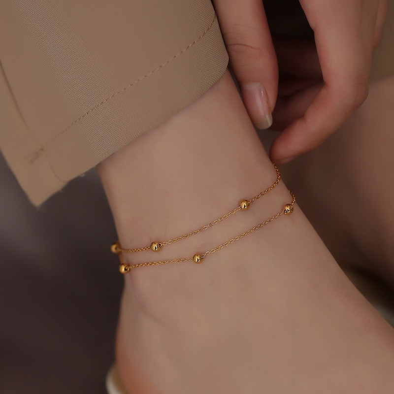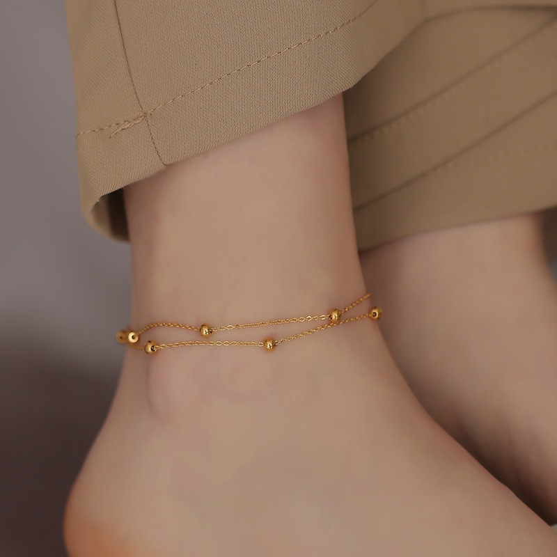 | nameOriginal | ins Niche Design Trendy Double-layer Bead Foot Chain Women's 18K Golden Cold Style Advanced Mori 2023 New Style |