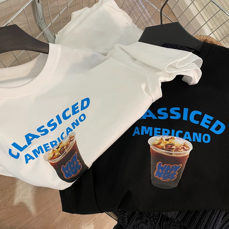 | nameOriginal | ins niche retro iced American coffee print round neck short-sleeved T-shirt for men and women new couple loose T-shirt summer |
