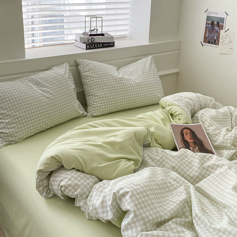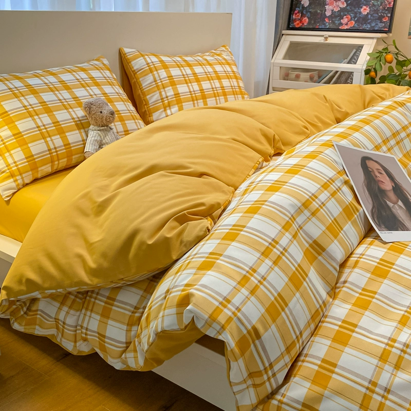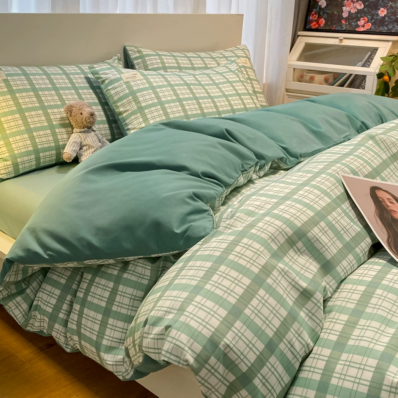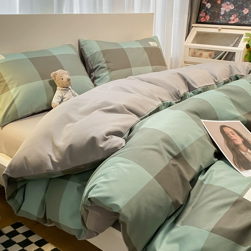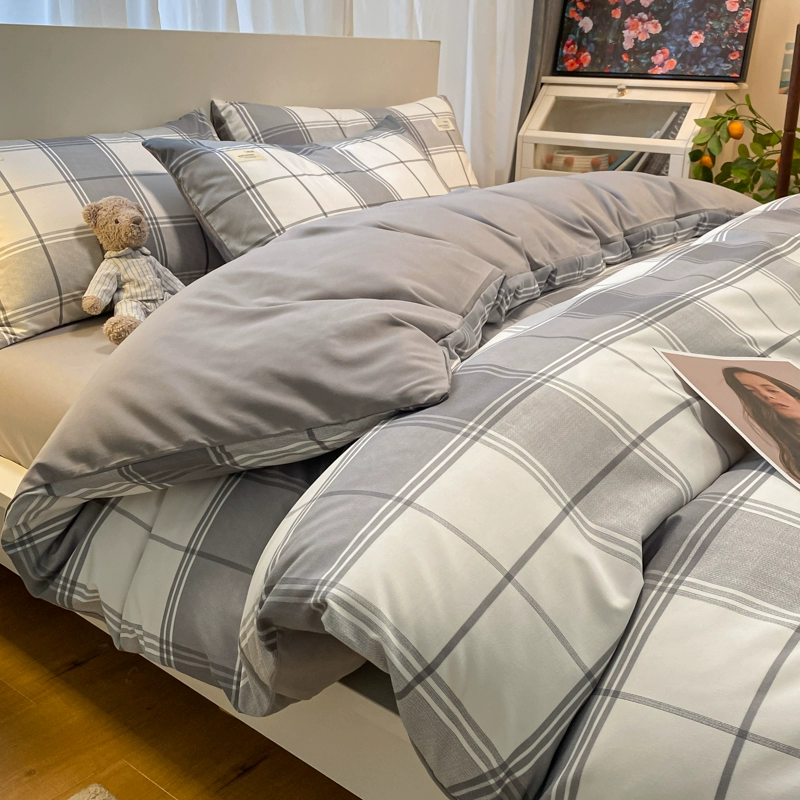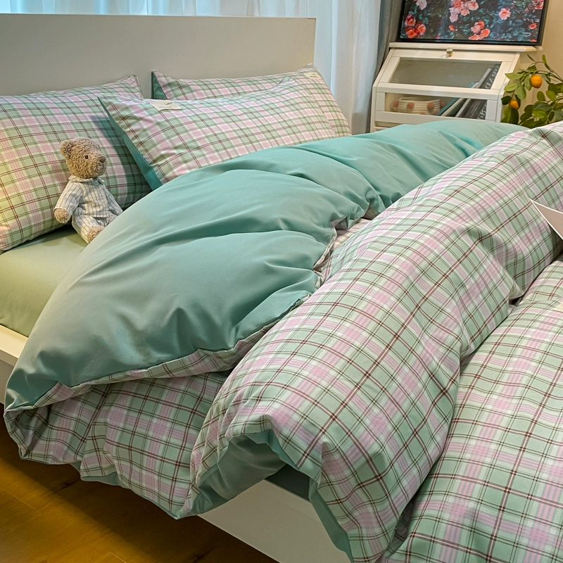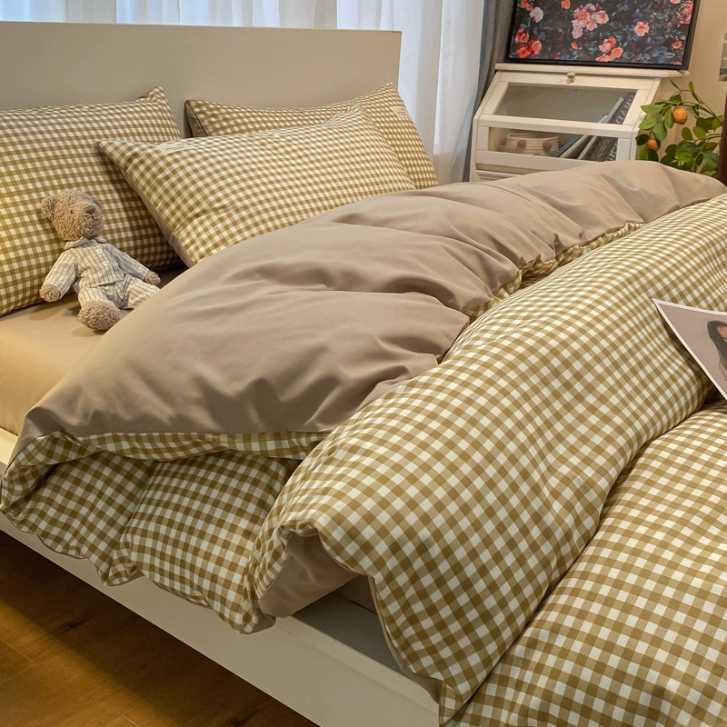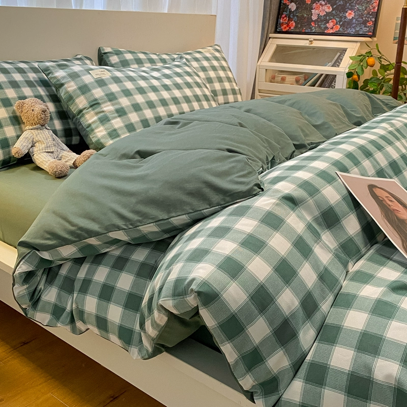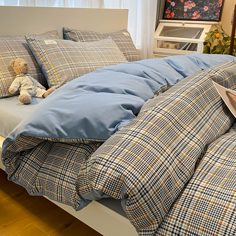 | nameOriginal | ins Nordic simple brushed retro plaid washed cotton bed four-piece set non-cotton pure cotton quilt cover three-piece set |