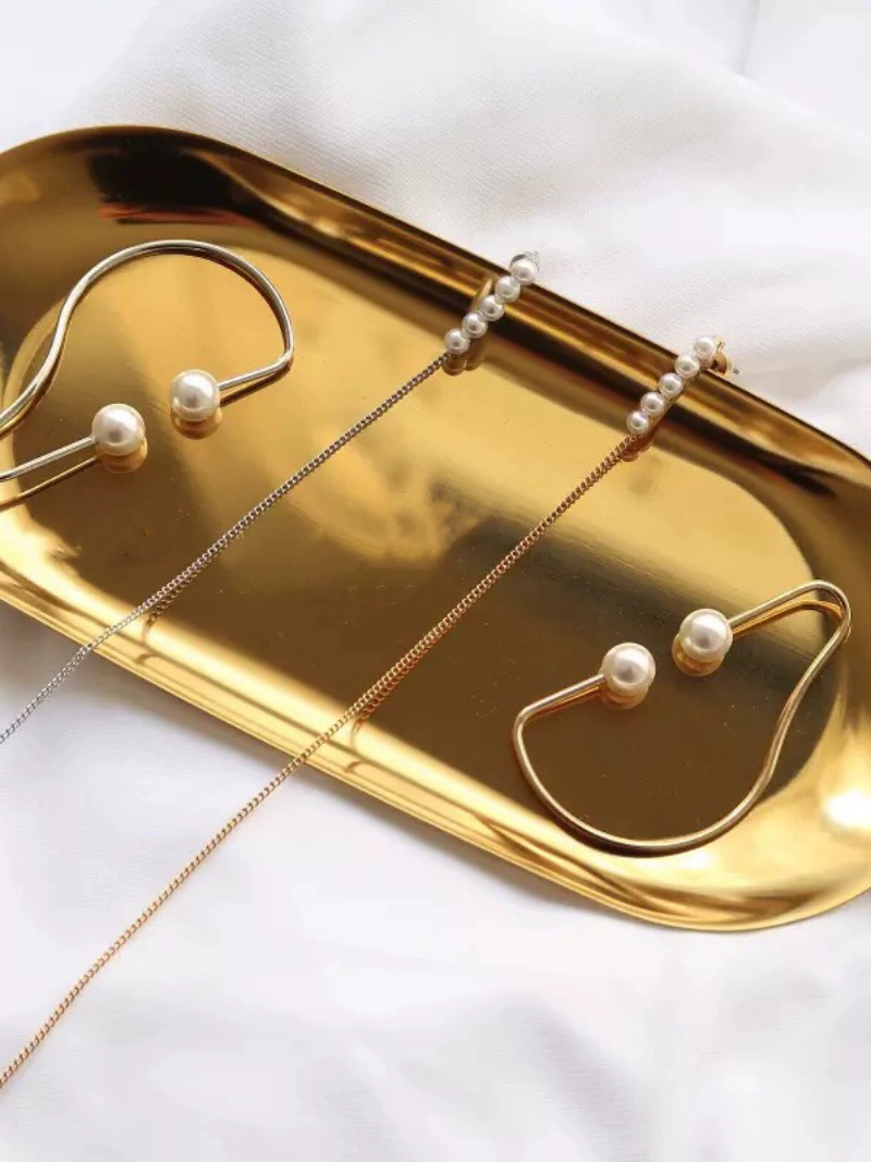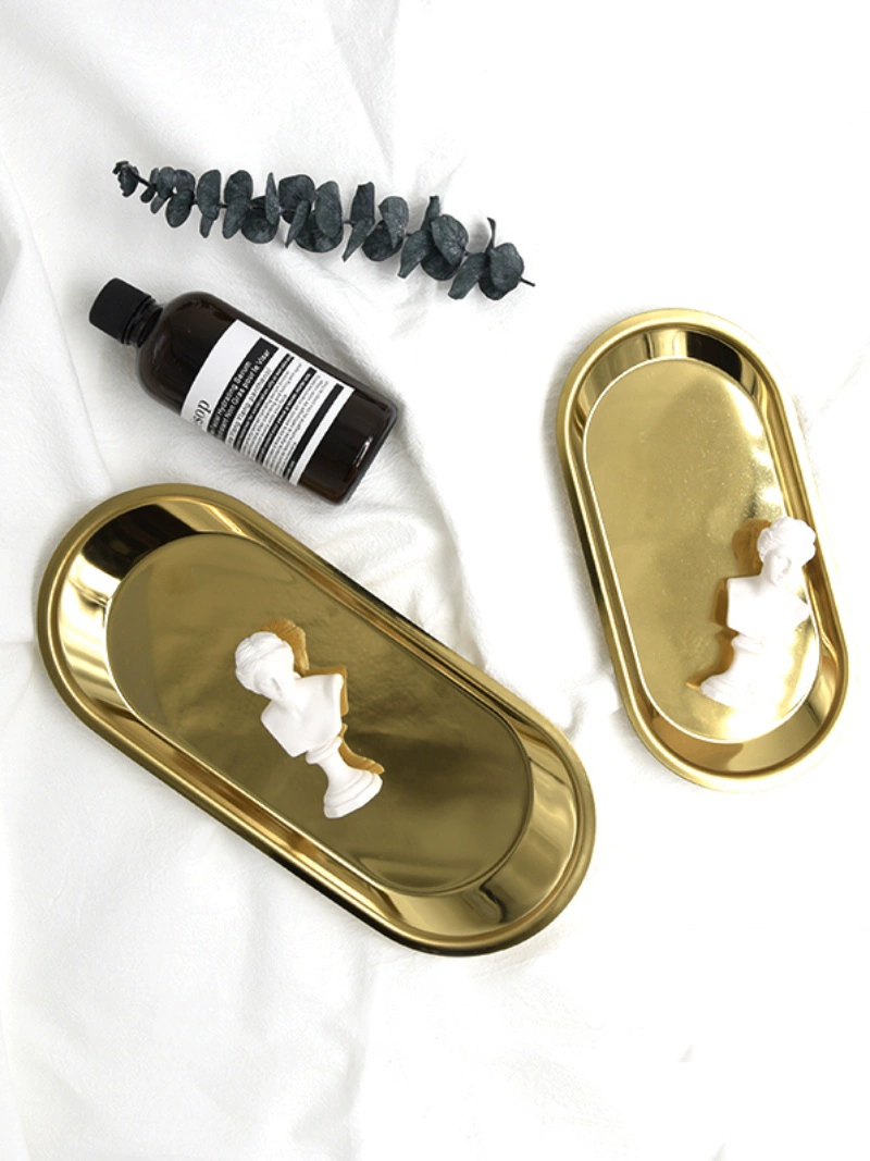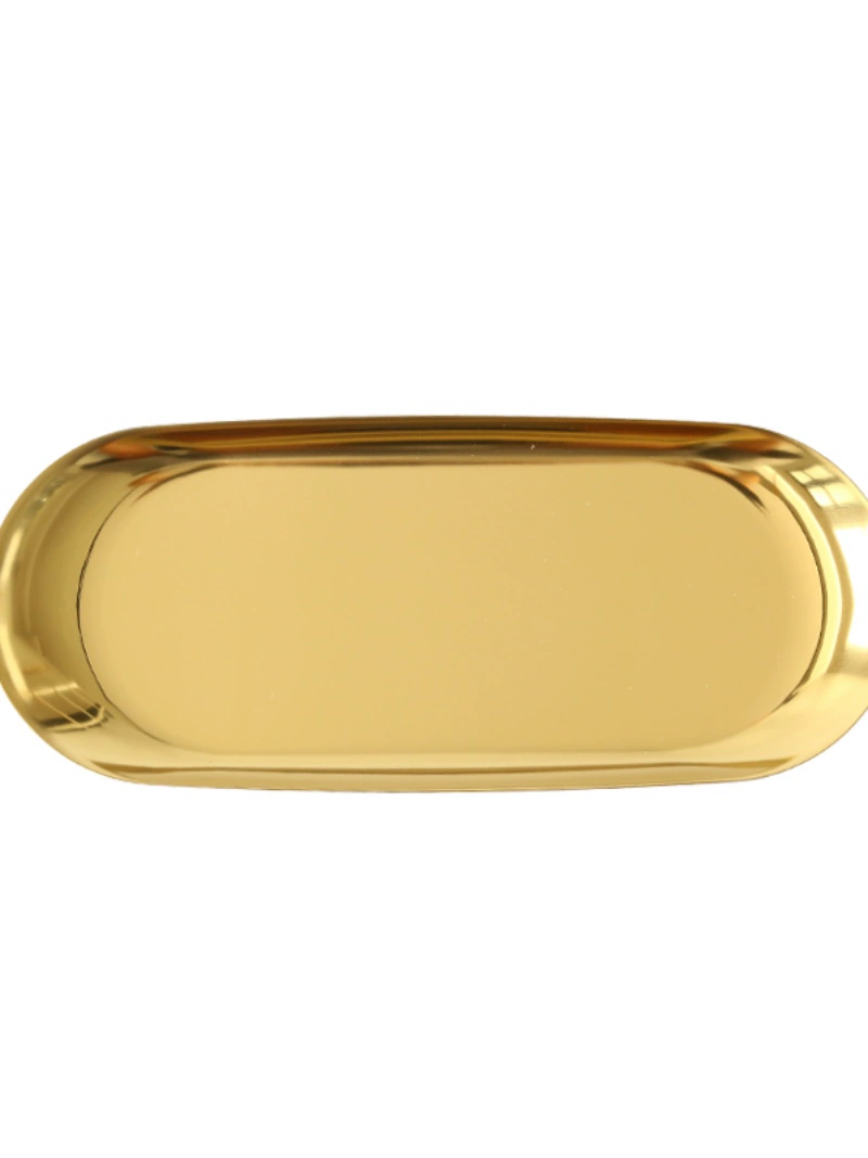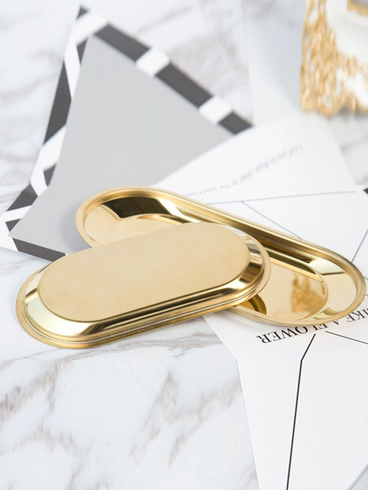 ins Nordic style gold oval metal jewelry plate gold storage tray afternoon tea snack cake tray
