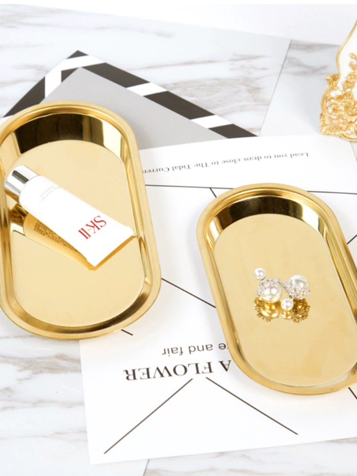 INS Nordic Wind golden oval metal jewelry disc gold storage tray afternoon tea snack cake tray