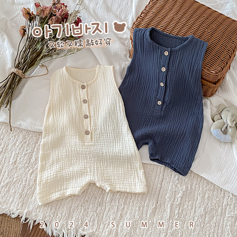 Ins Nordic Style Short Climbing Pure Cotton Gauze Baby Summer Jayshirt Baby Sleeveless Vest Hayi Climbing Clothes for Going Out