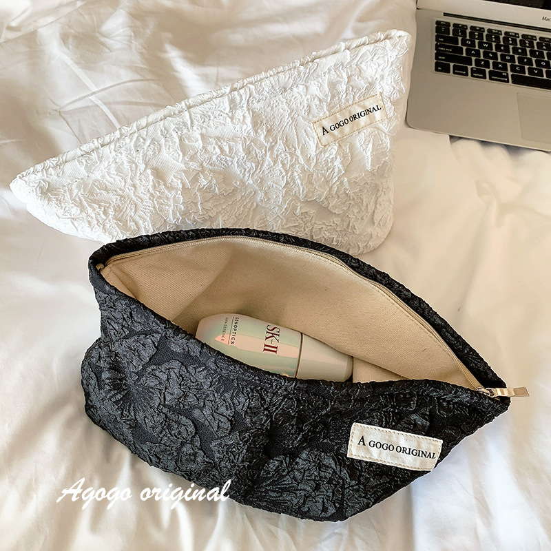 Ins Original Cosmetic Bag Three-Dimensional Flower Large Capacity Storage Bag Girl’s Travel Skin Care Canvas Zipper Bag