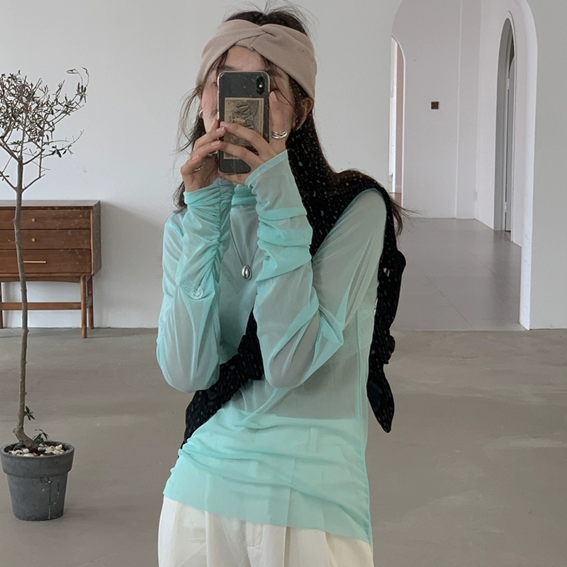 | nameOriginal | ins retro candy color thin see-through long-sleeved t-shirt |