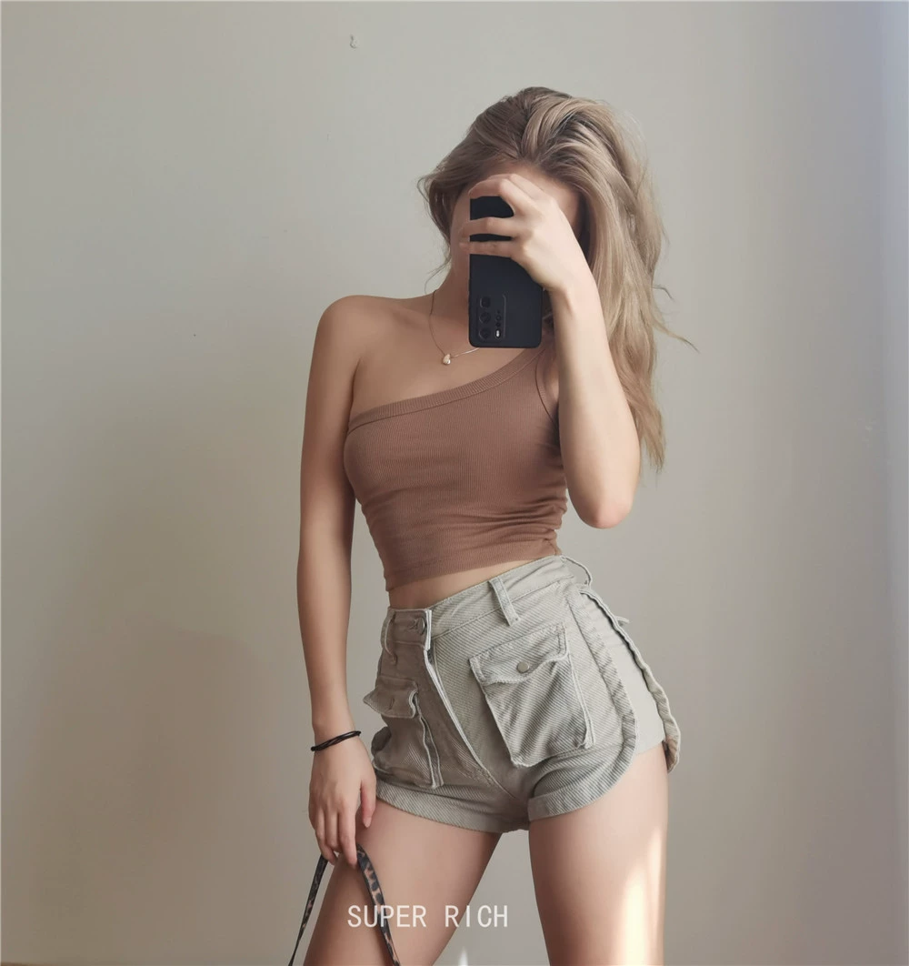 | nameOriginal | ins reversible one-shoulder elastic waist vest |