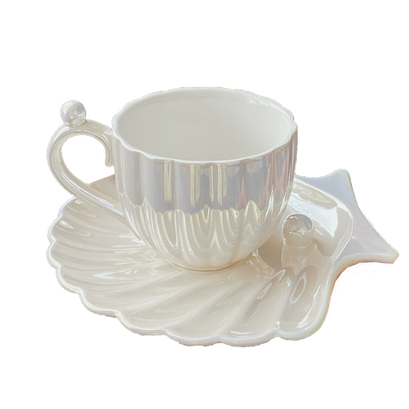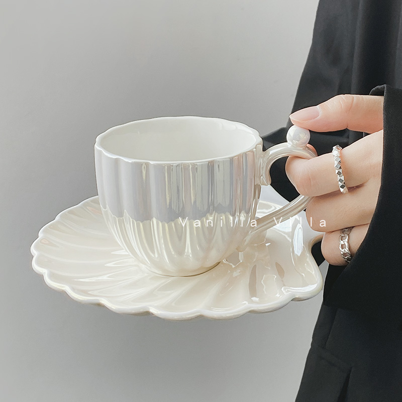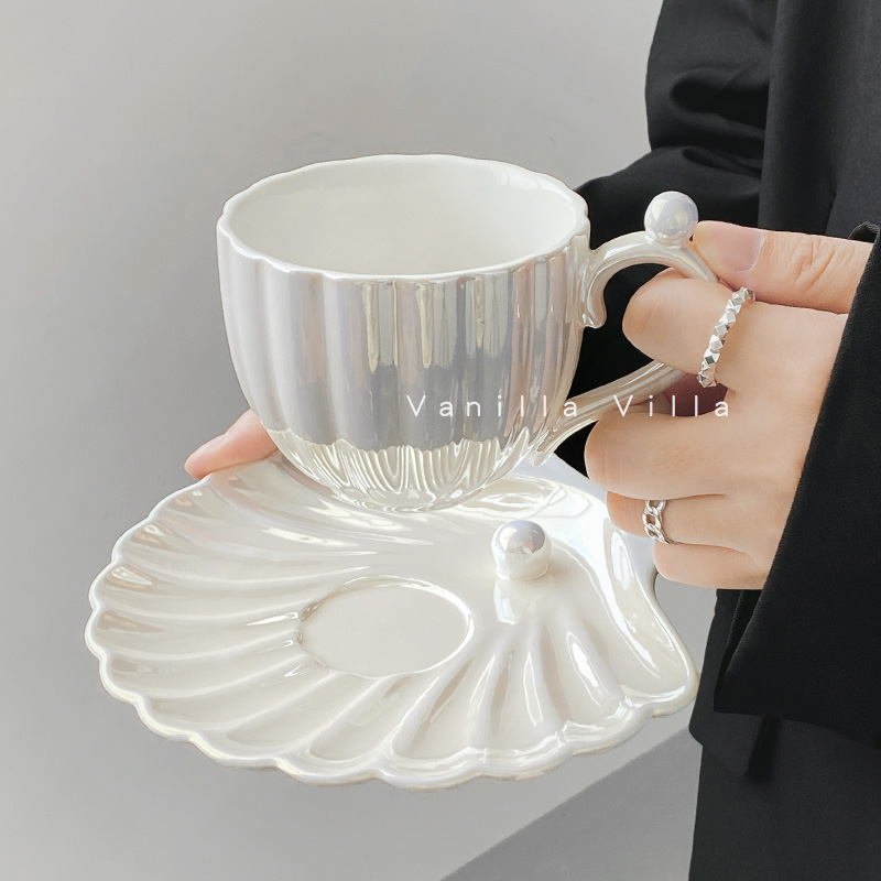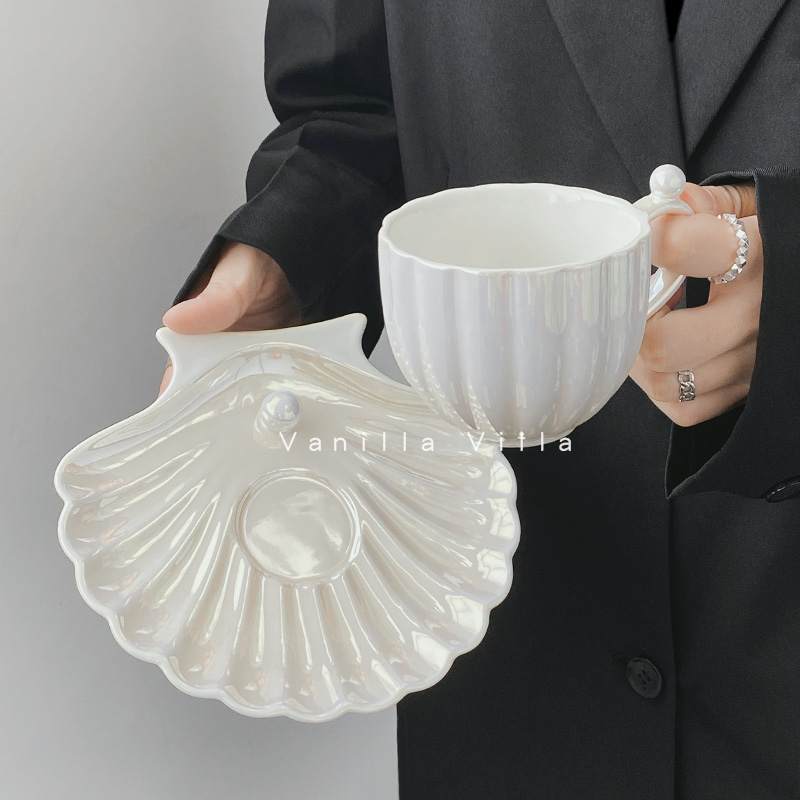 | nameOriginal | Ins Shell Ceramic Mug Women's Coffee Water Cup Household Pearl Cup and Saucer suit High Color Value Cup Accompanying Gift |