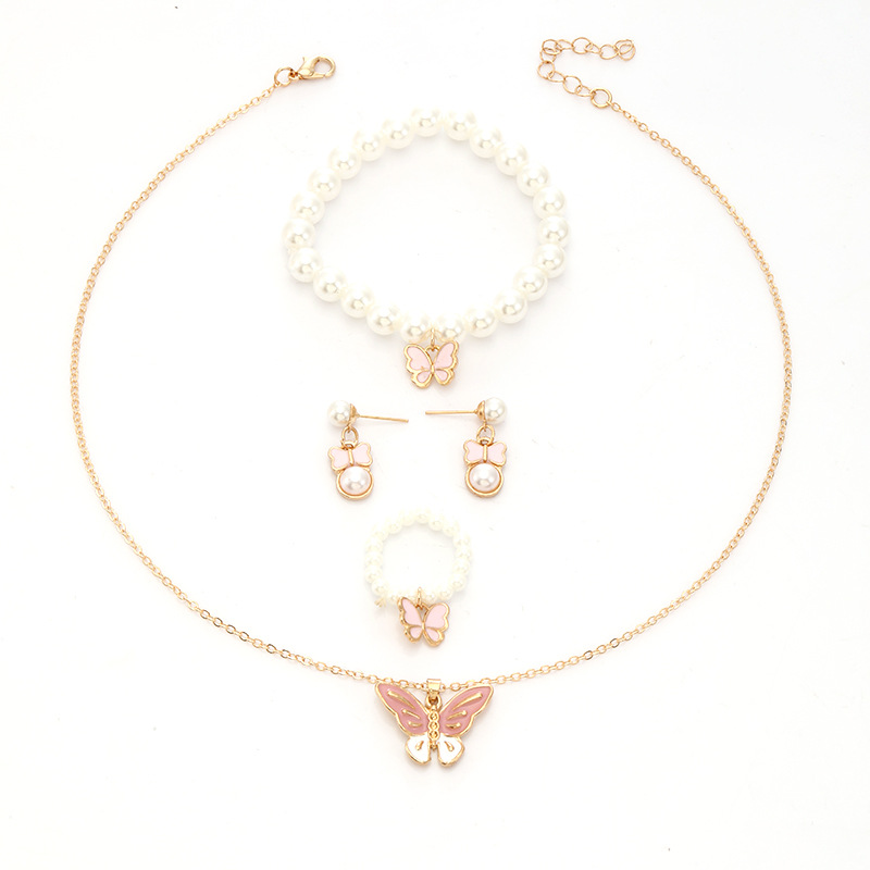 | nameOriginal | Ins Simple Butterfly Jewelry suit Fashion Pearl Bracelet Ring Cute Oil Dropping Butterfly Necklace Earrings Women |