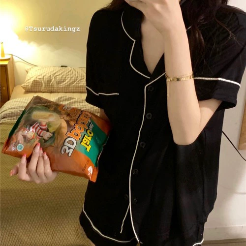 | nameOriginal | ins simple contrasting color modal cotton pajamas girls summer short-sleeved shorts Korean style home service two-piece set |