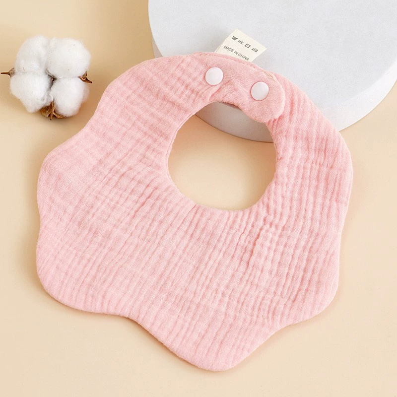 ins solid color pure cotton gauze bib baby saliva towel petal bib anti-vomiting gauze saliva pocket autumn and winter