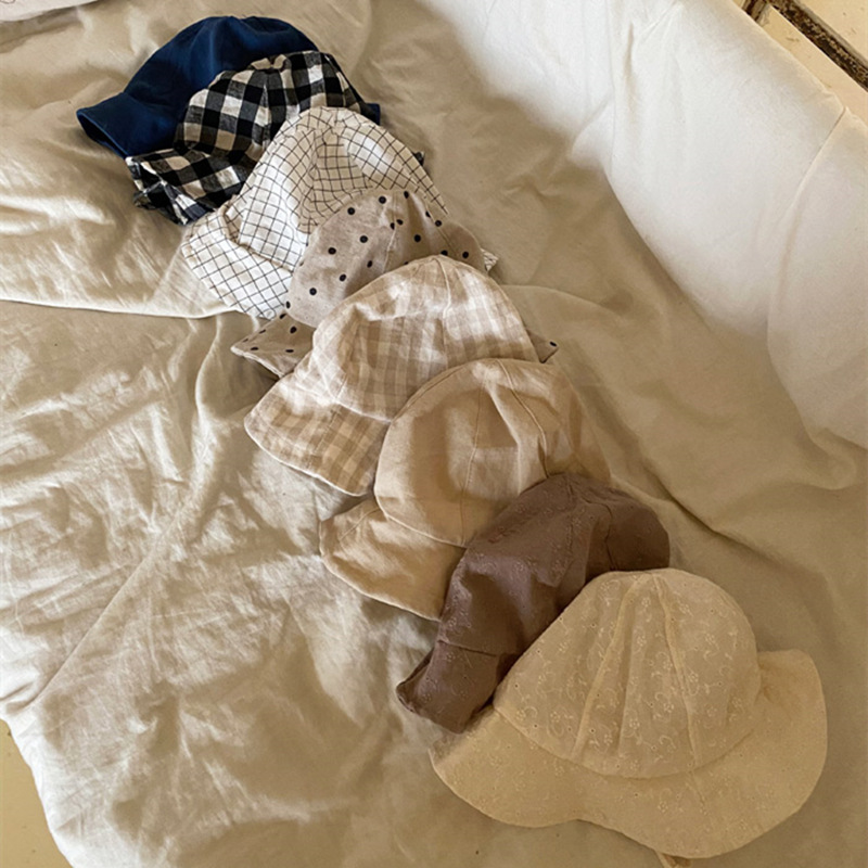ins Style Concave Style Baby Hat Summer Fisherman Hat Baby Lace-up Thin Sunshade Hat for Boys and Girls