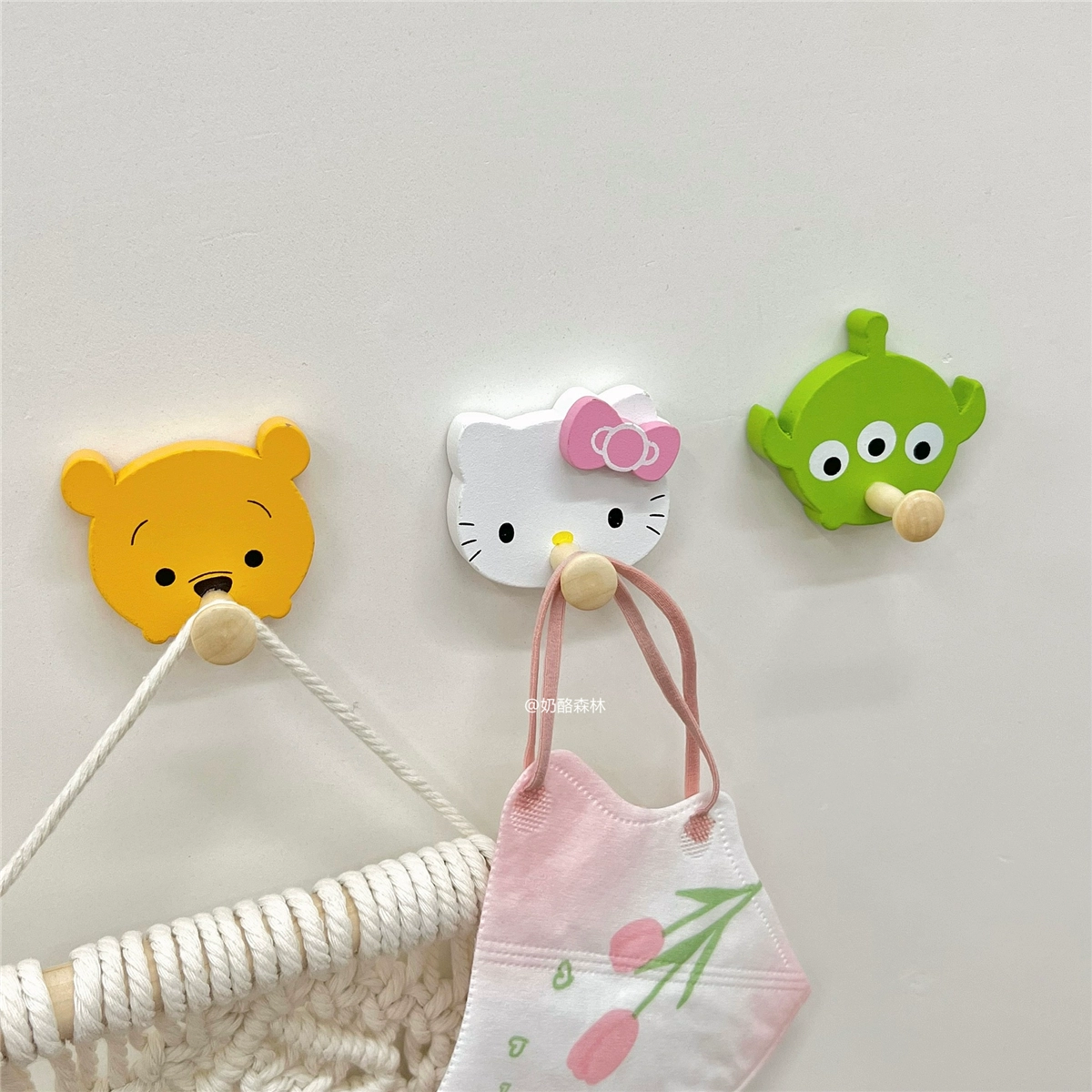 | nameOriginal | Ins style cute punch-free wooden hook pink cat frog bear element cartoon storage wall sticky hook |