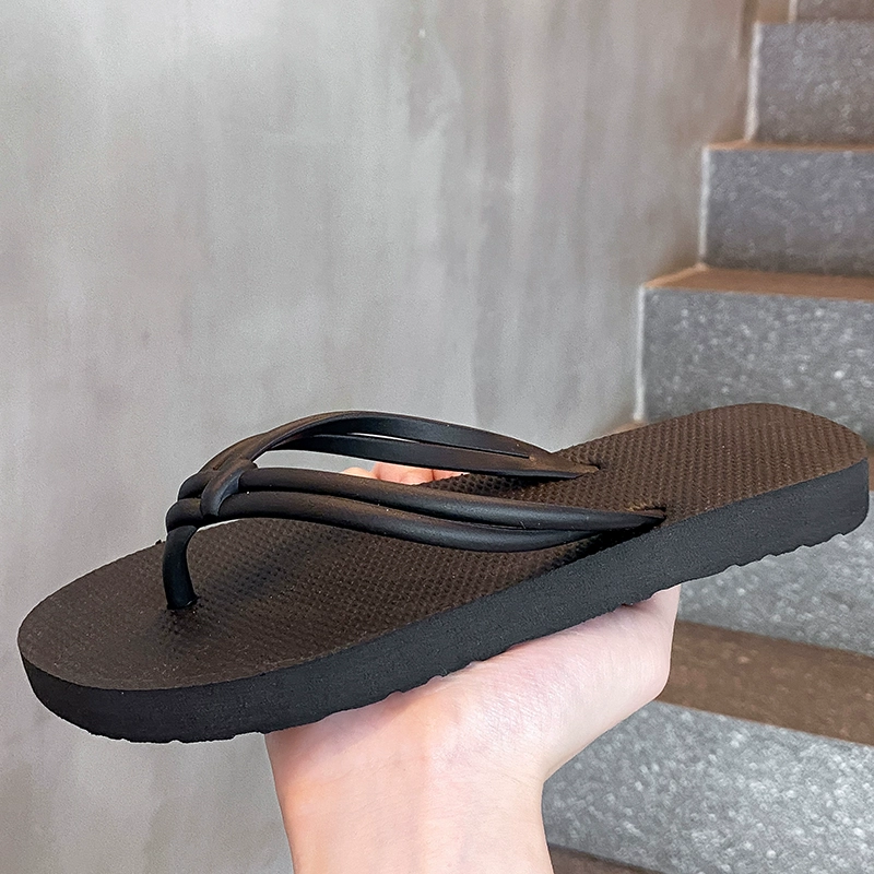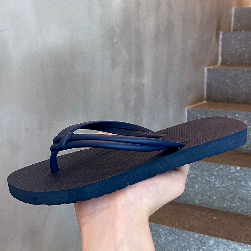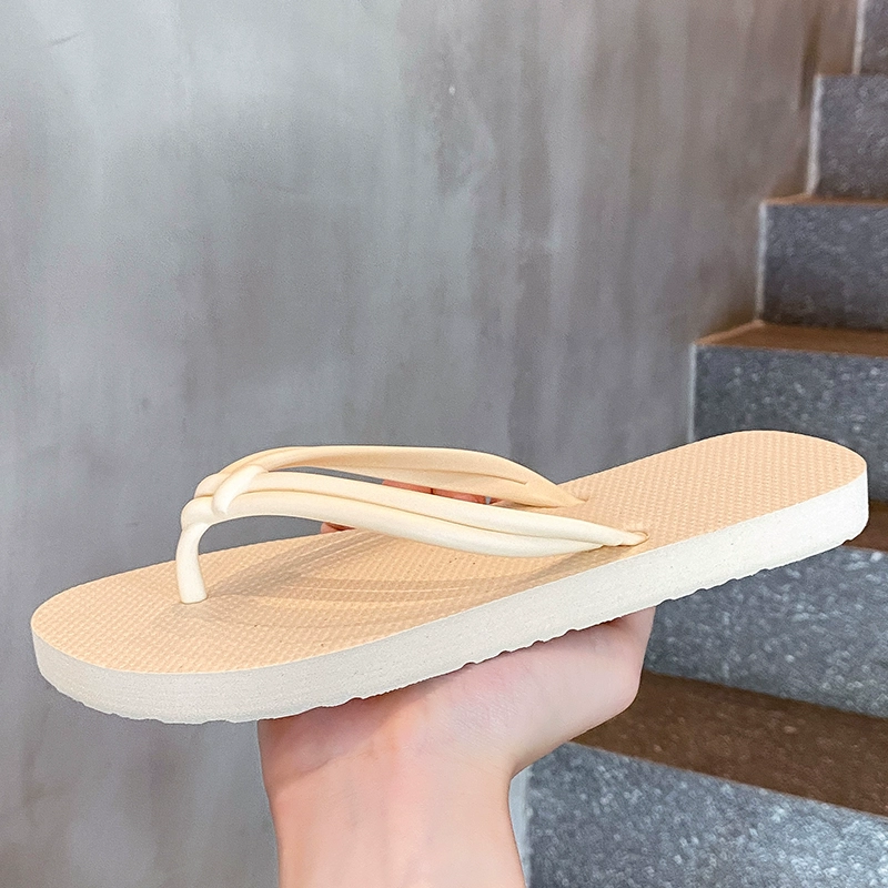 Ins style fashionable simple casual flip flops for women summer non-slip bathing foot-pinch flat beach slippers for women outside wearing