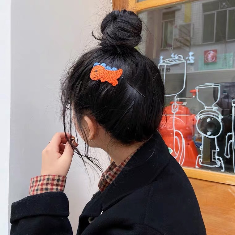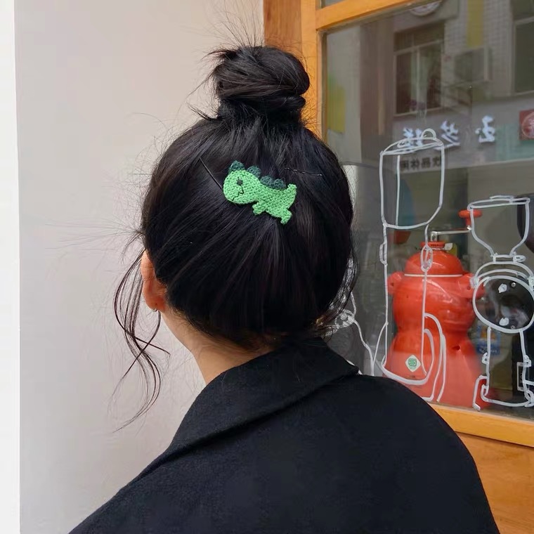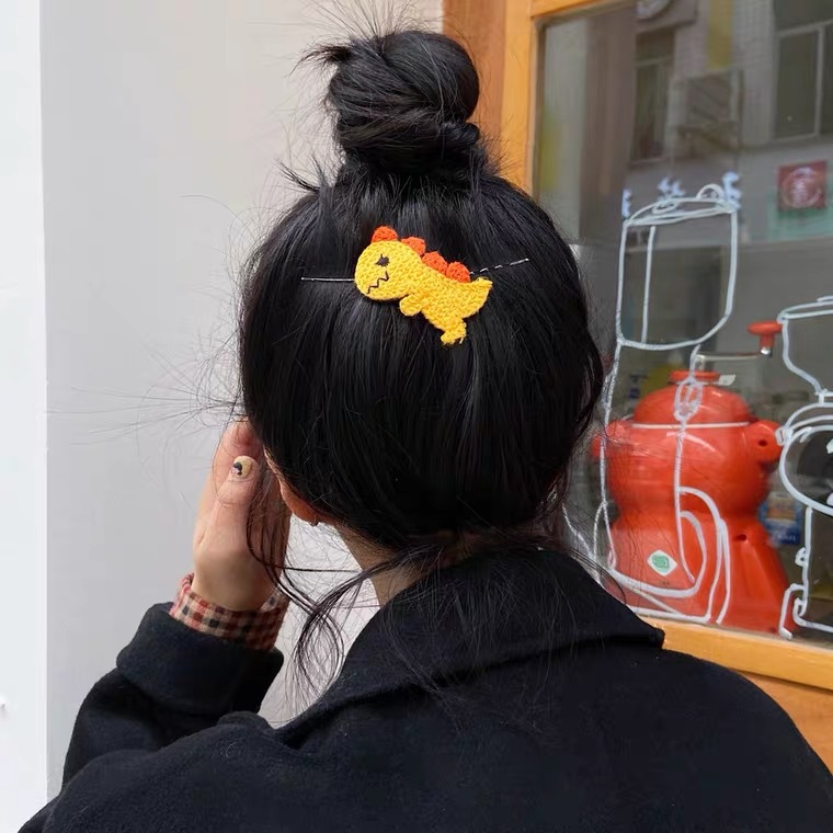 nameOriginal | ins Style Girl Heart Autumn and Winter New Dinosaur Cartoon Creative Knitted Wool Side Clip Cute Hairpin Headwear |