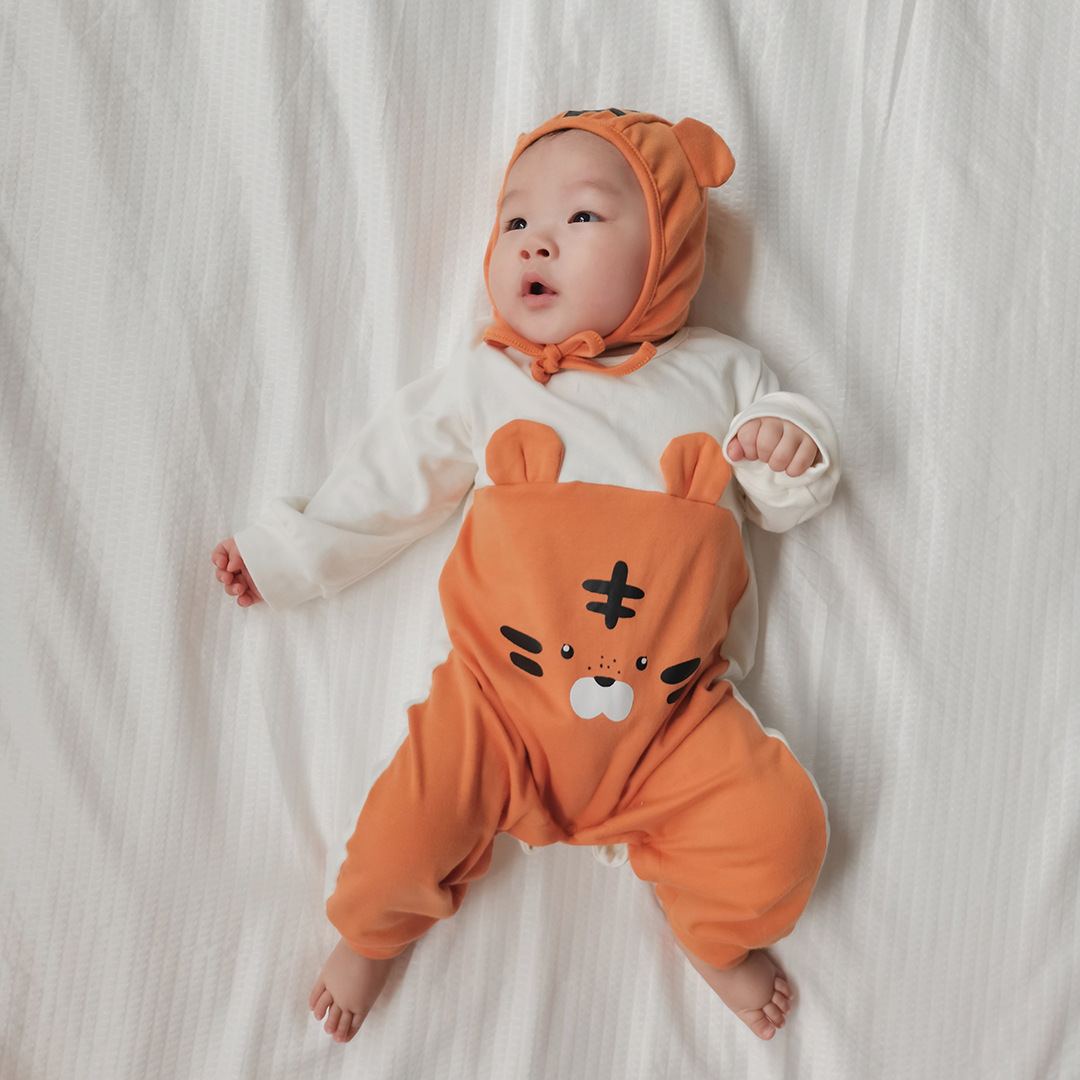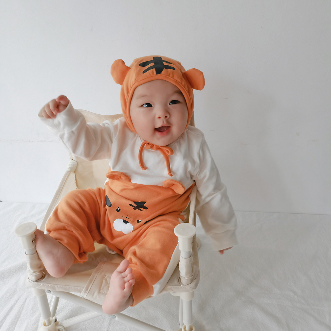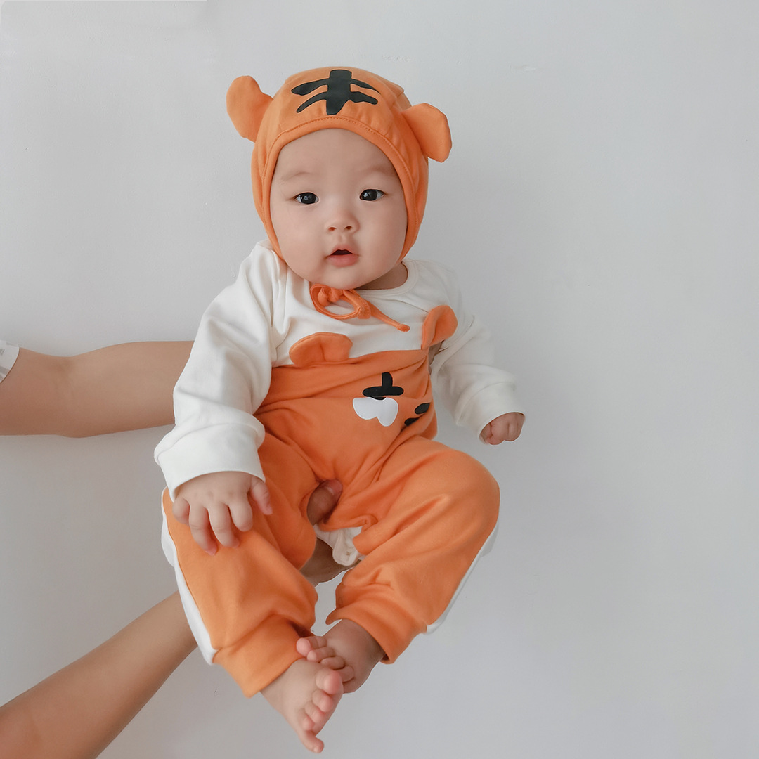 ins style Korean style baby romper 2023 New Spring and Autumn Tiger shape color matching children’s romper with hat for free