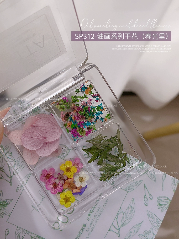 | nameOriginal | Ins style oil painting four-square grid hand holding dried flowers manicure |