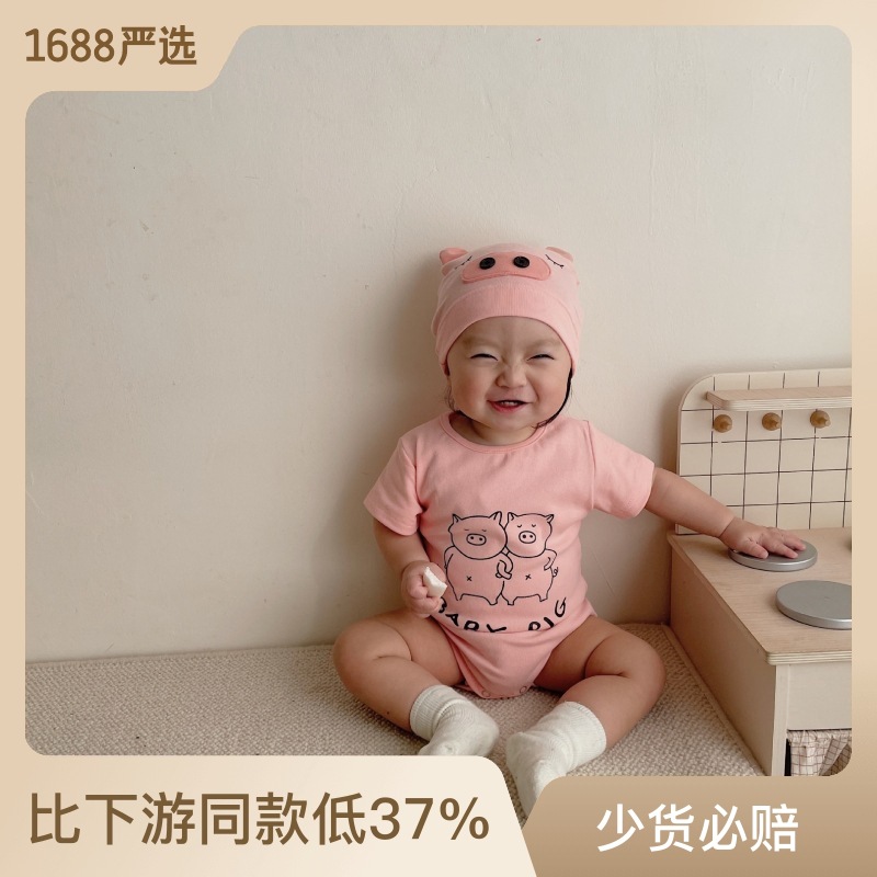 | nameOriginal | Ins Style Piggy Printed Jetsuit 2024 Summer New Baby Bag Fart Suit Baby Climbing Suit |