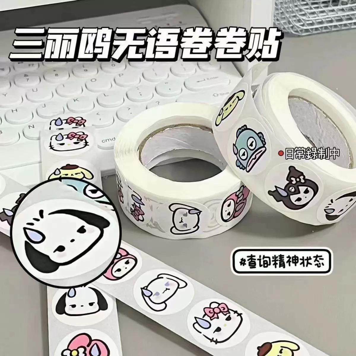 | nameOriginal | Ins Style Sanrio Cartoon Anime Japanese Speechless Sticker Round Sealing Sticker Decorative Roll Sticker 500 Stickers  |