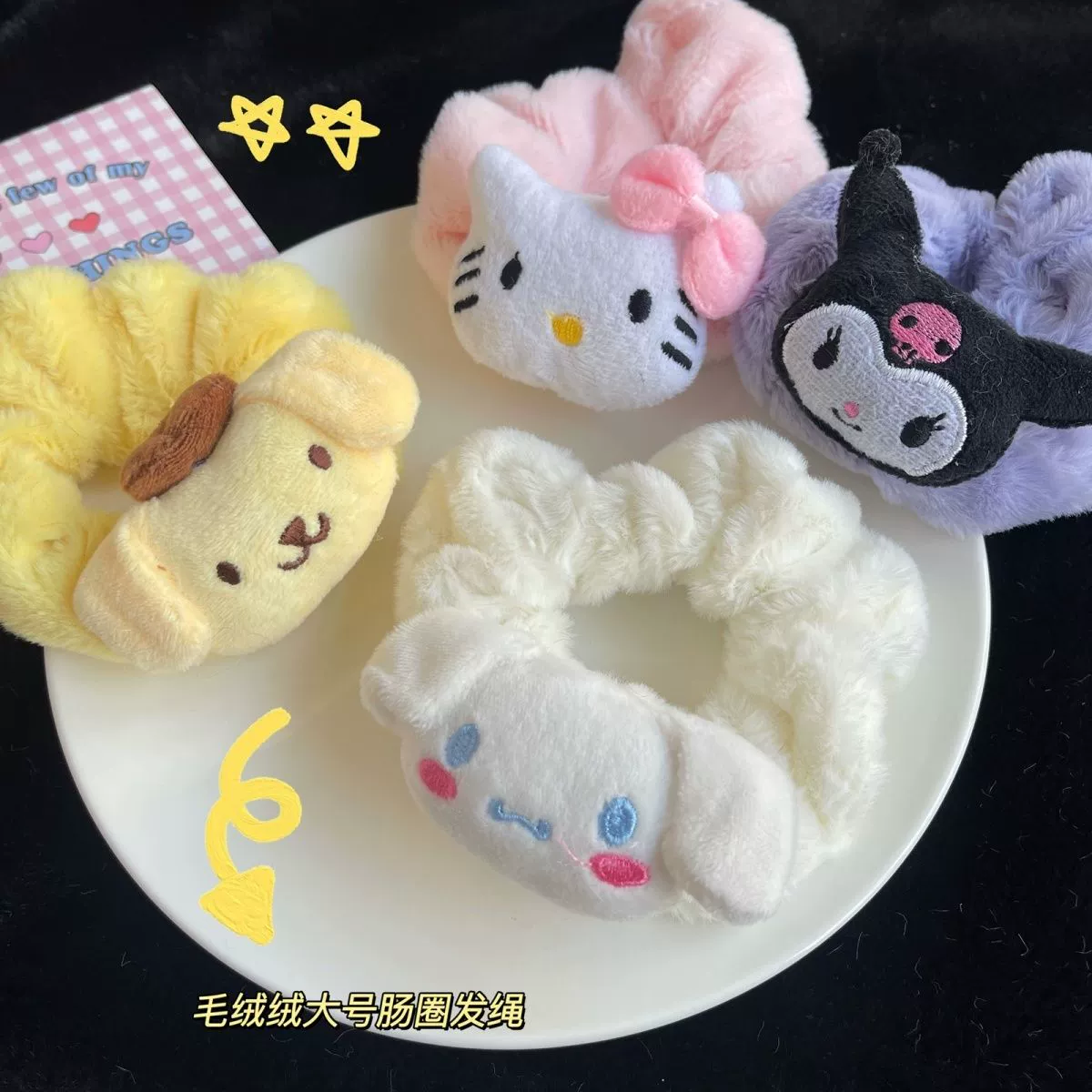 | nameOriginal | Ins style Sanrio cinnamon dog hair band autumn and winter plush Kuromi best friend large intestine circle girl heart student hair accessories |