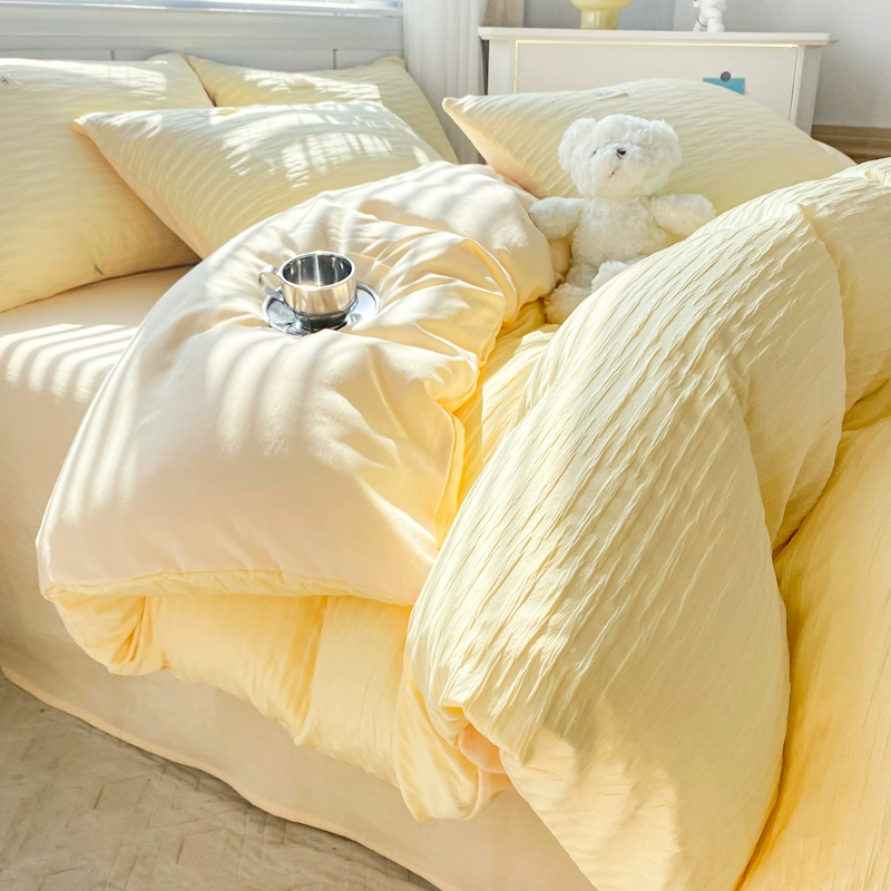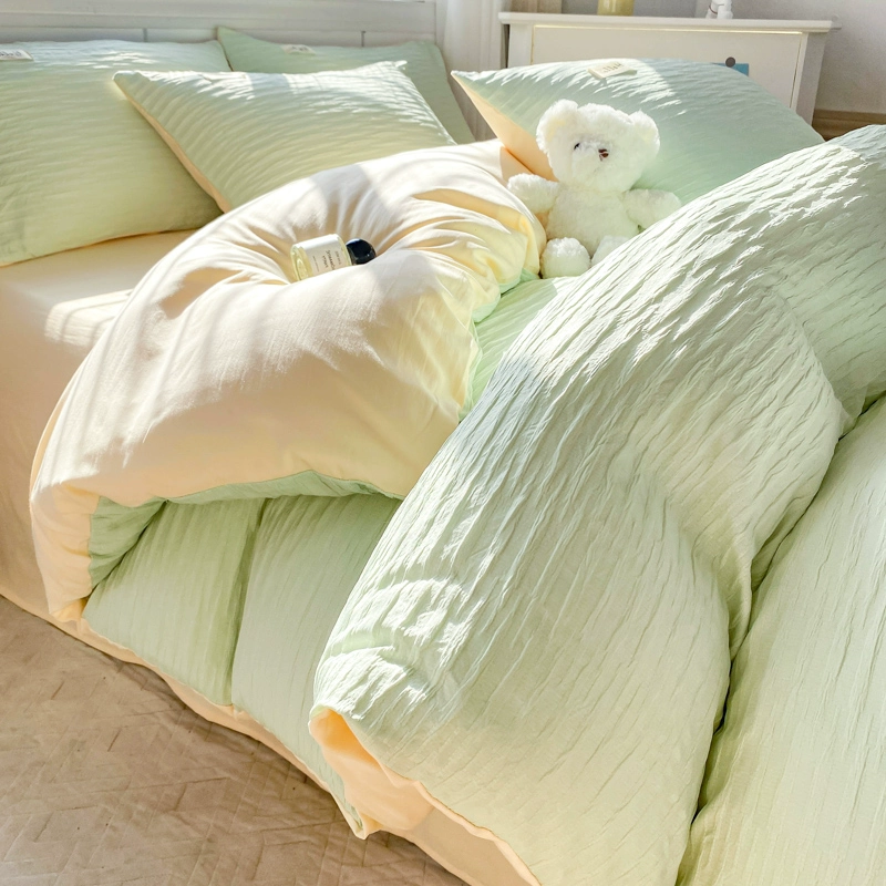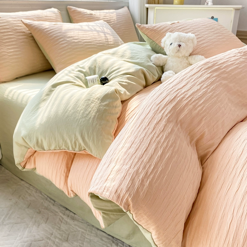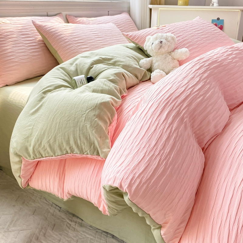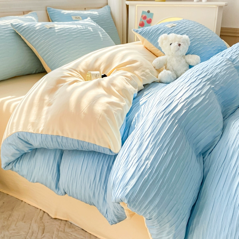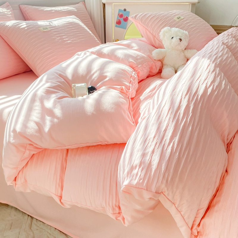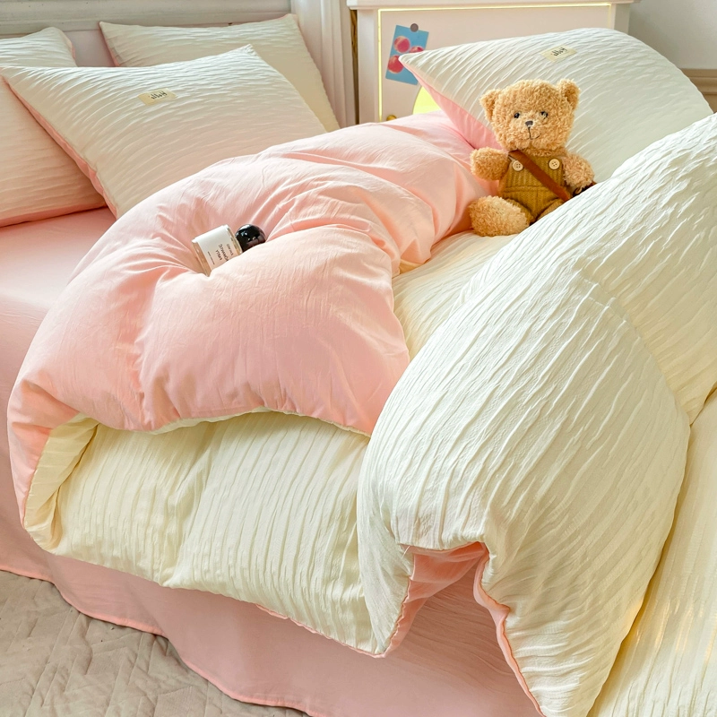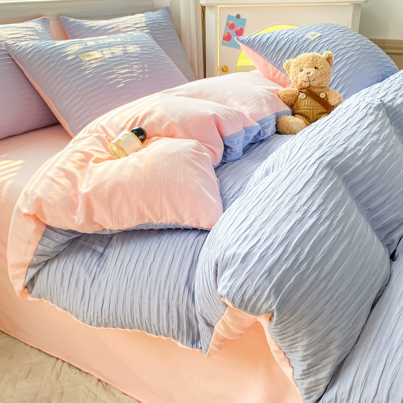 | nameOriginal | Ins style seersucker bed four-piece set washed cotton three-piece bed sheet quilt cover dormitory bed sheet simple quilt cover |