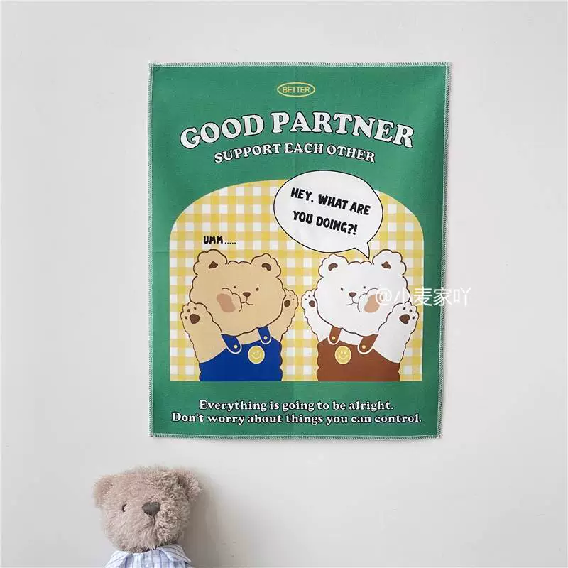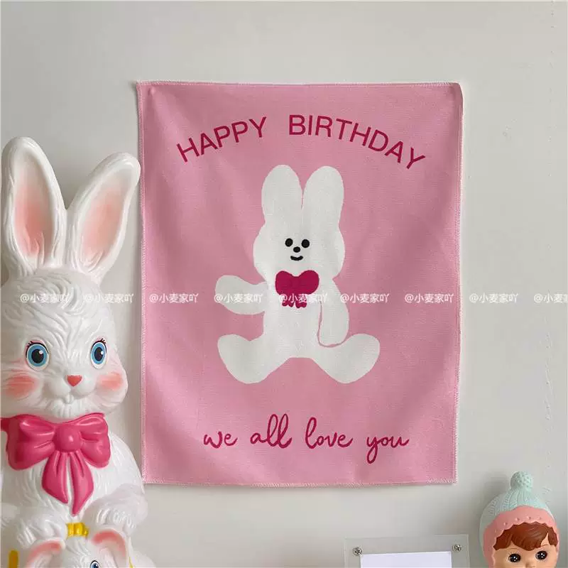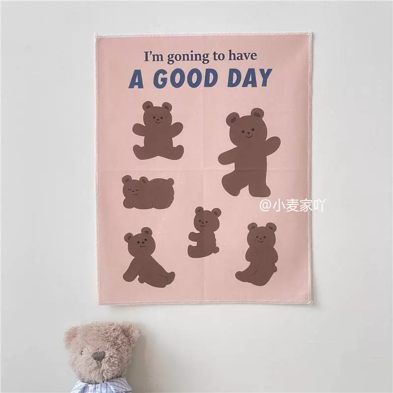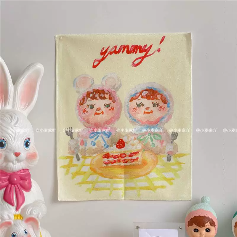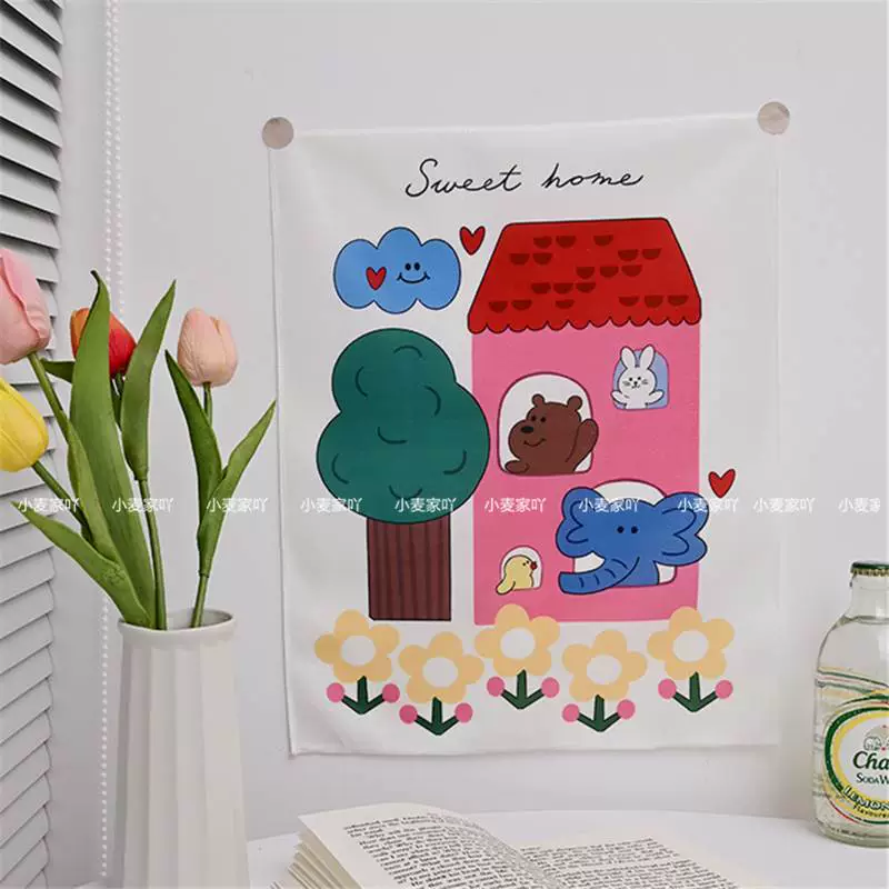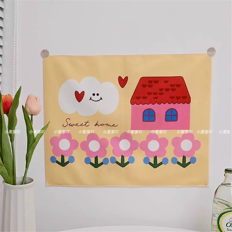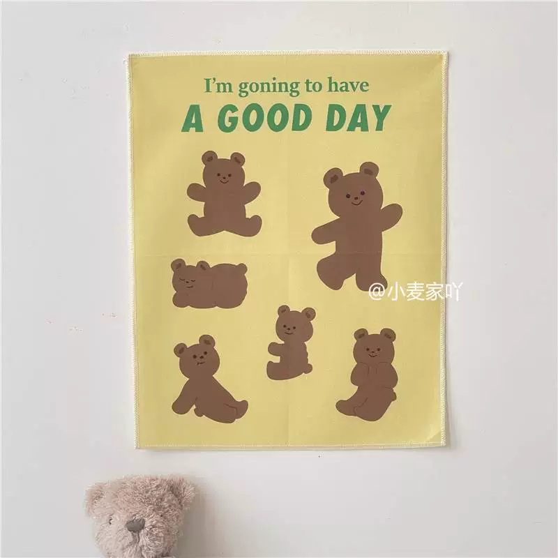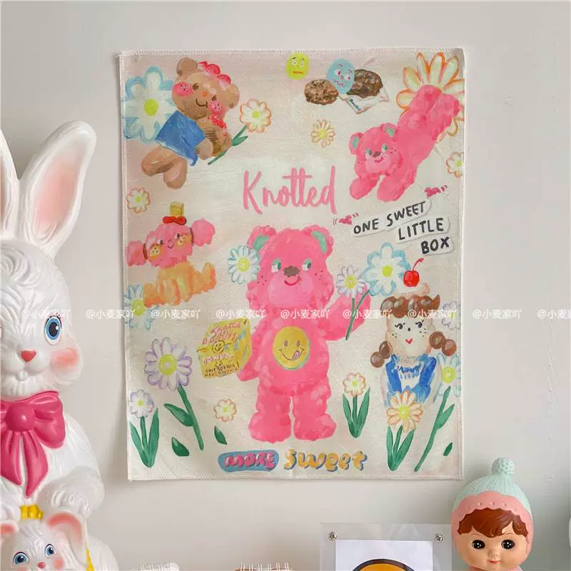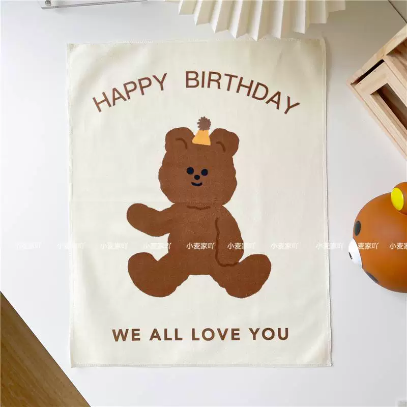 | nameOriginal | Ins style small hanging cloth Korean yellow smiling face cartoon oil painting bear tapestry birthday cake photo background cloth |