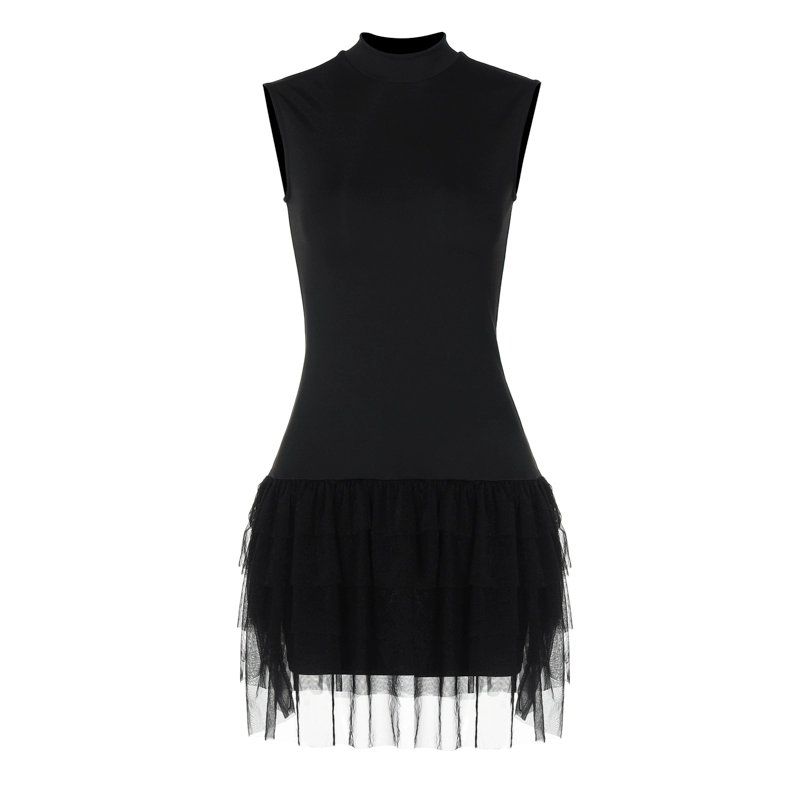 Ins style stand collar A-line mesh sleeveless dress