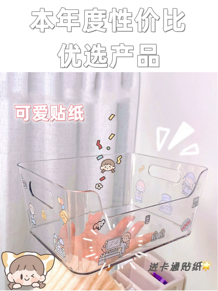 Ins style transparent dormitory storage box cosmetics organizer makeup box student cute desktop mask storage rack female