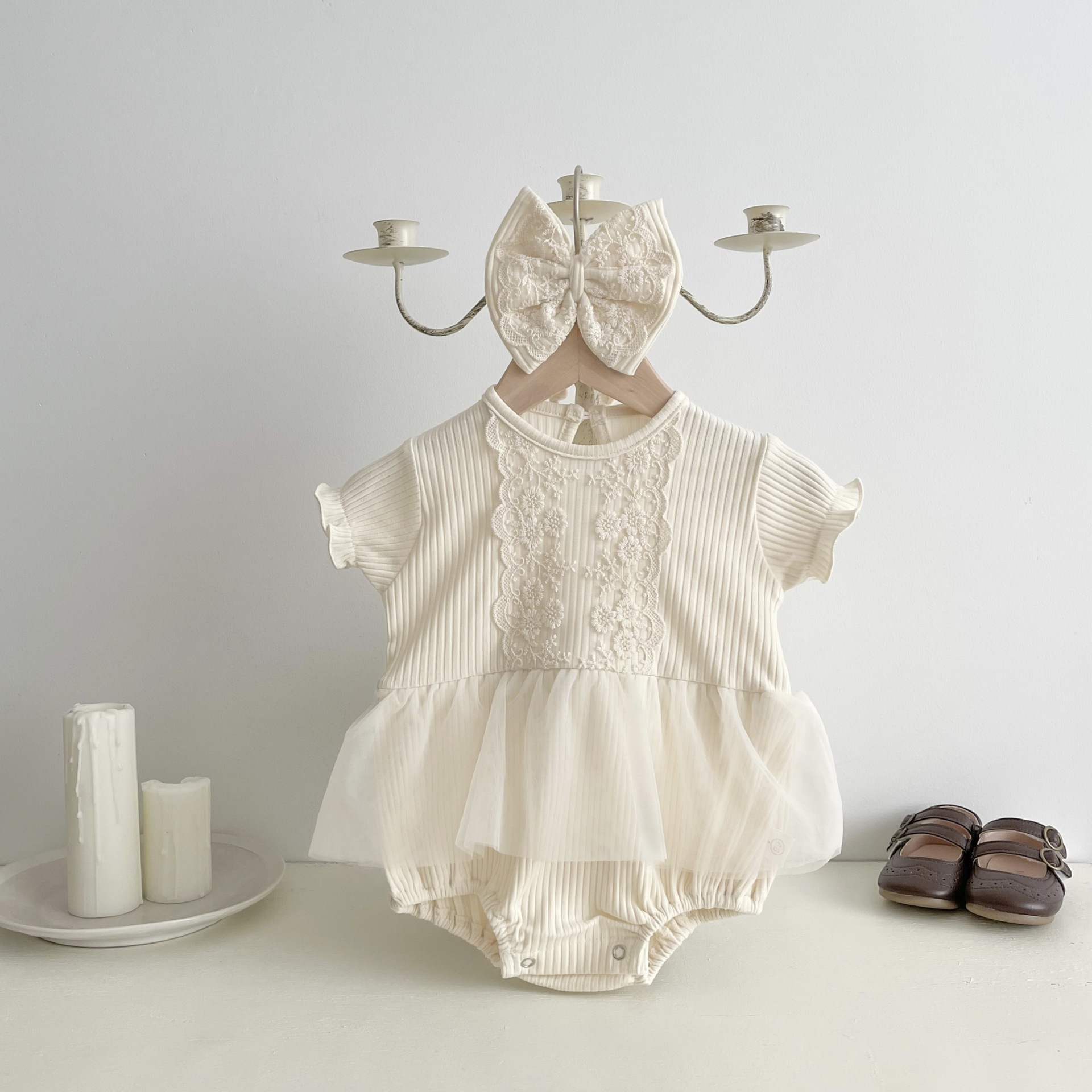 | nameOriginal | INS summer baby mesh sheath baby girl princess lace pit jumpsuit with hair band |