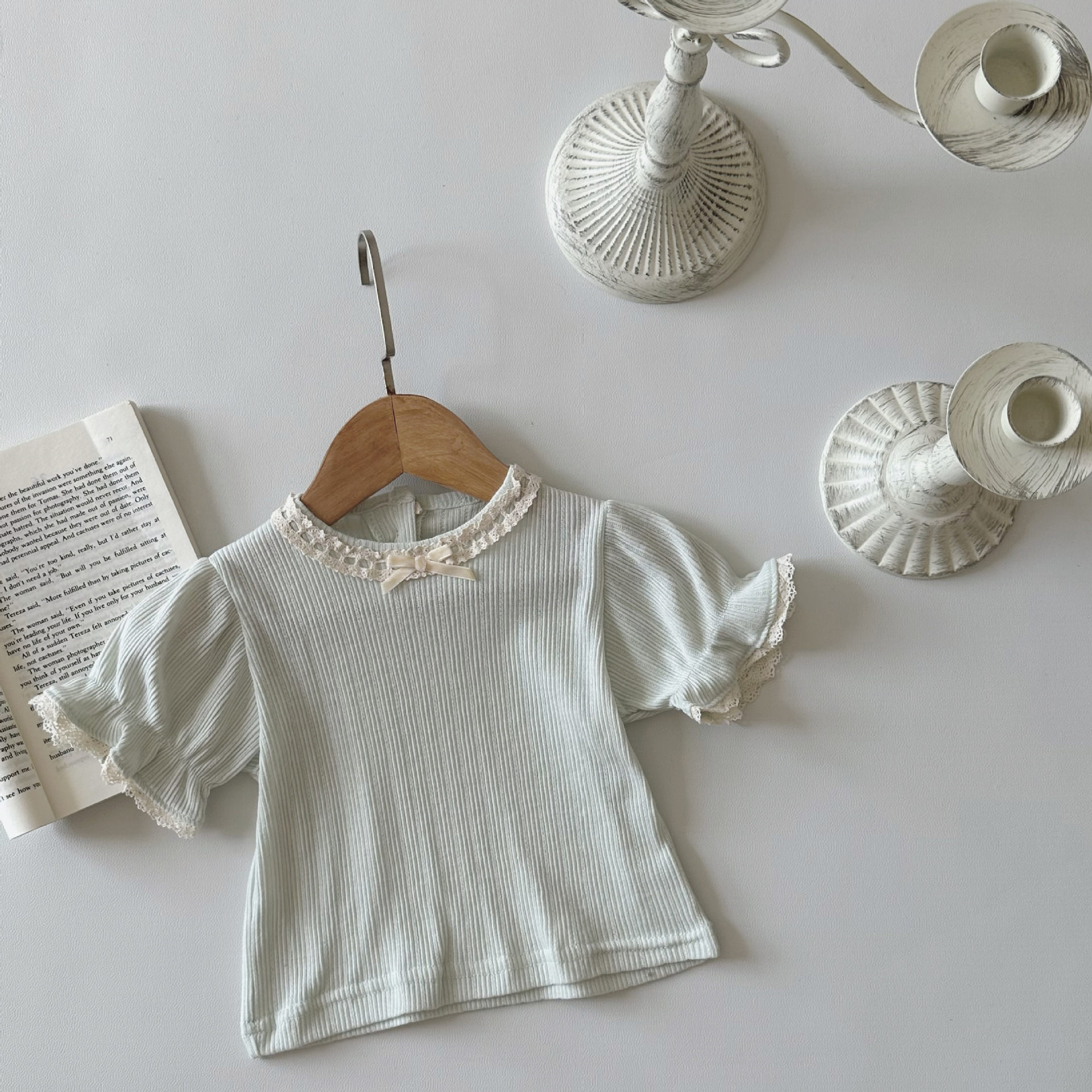 | nameOriginal | INS summer baby pit bow lace collar short sleeve bottoming shirt baby girl princess sweet top |
