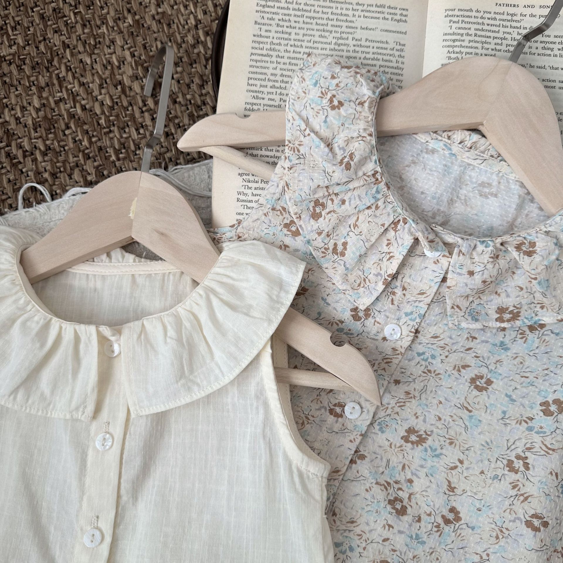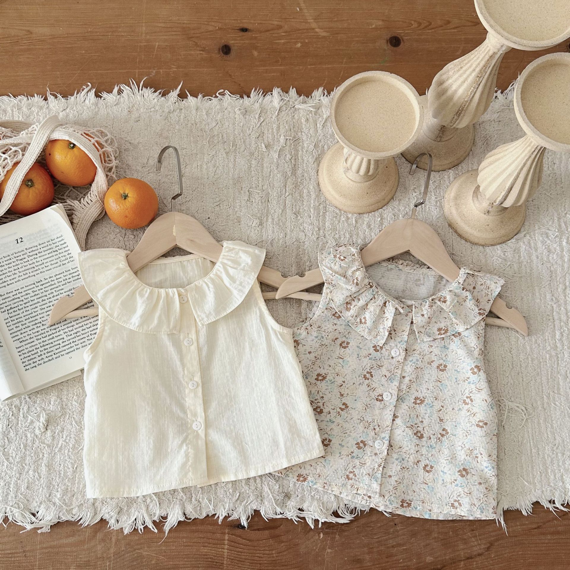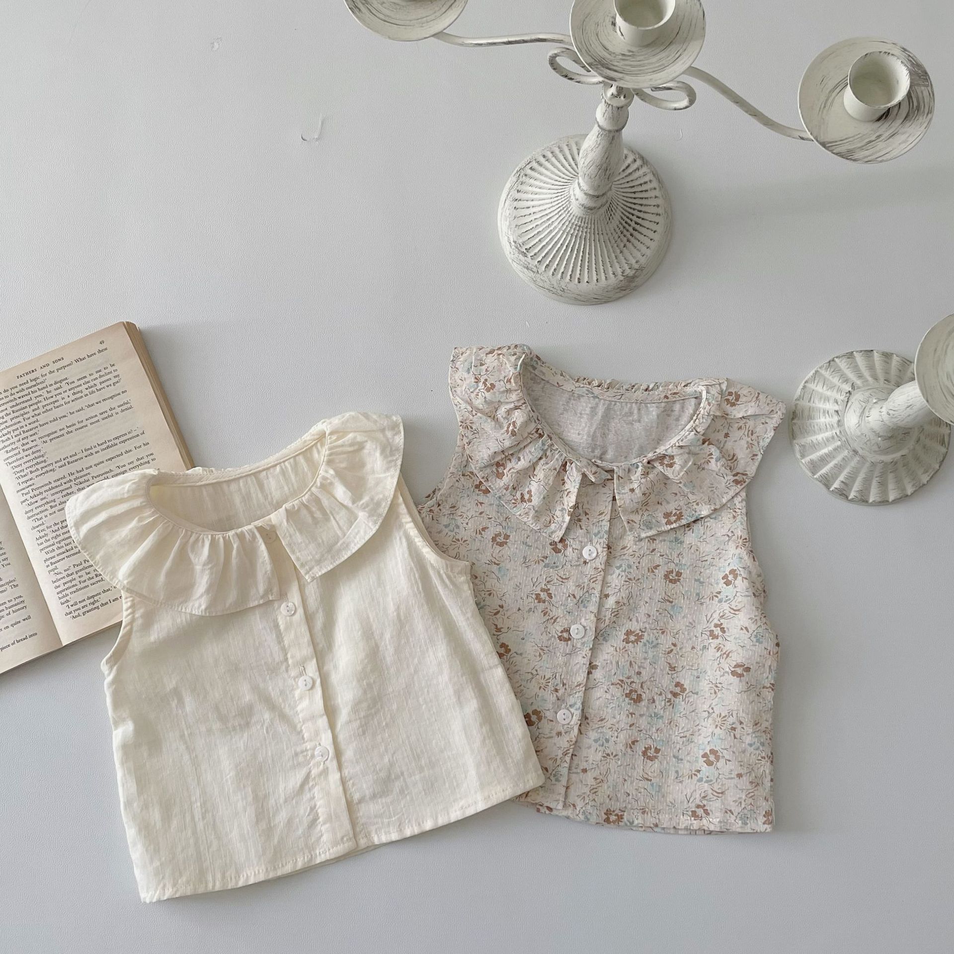 | nameOriginal | INS Summer Baby Sleeveless Lotus Collar Single-breasted Shirt Baby Girl Sweet Floral Base Shirt |