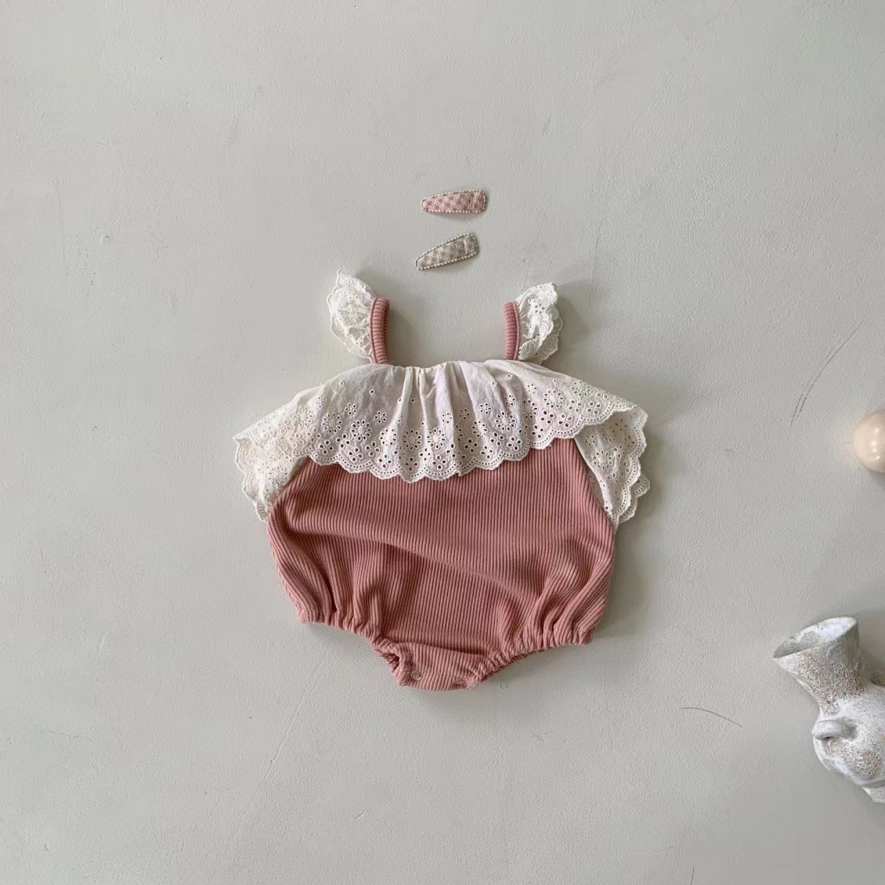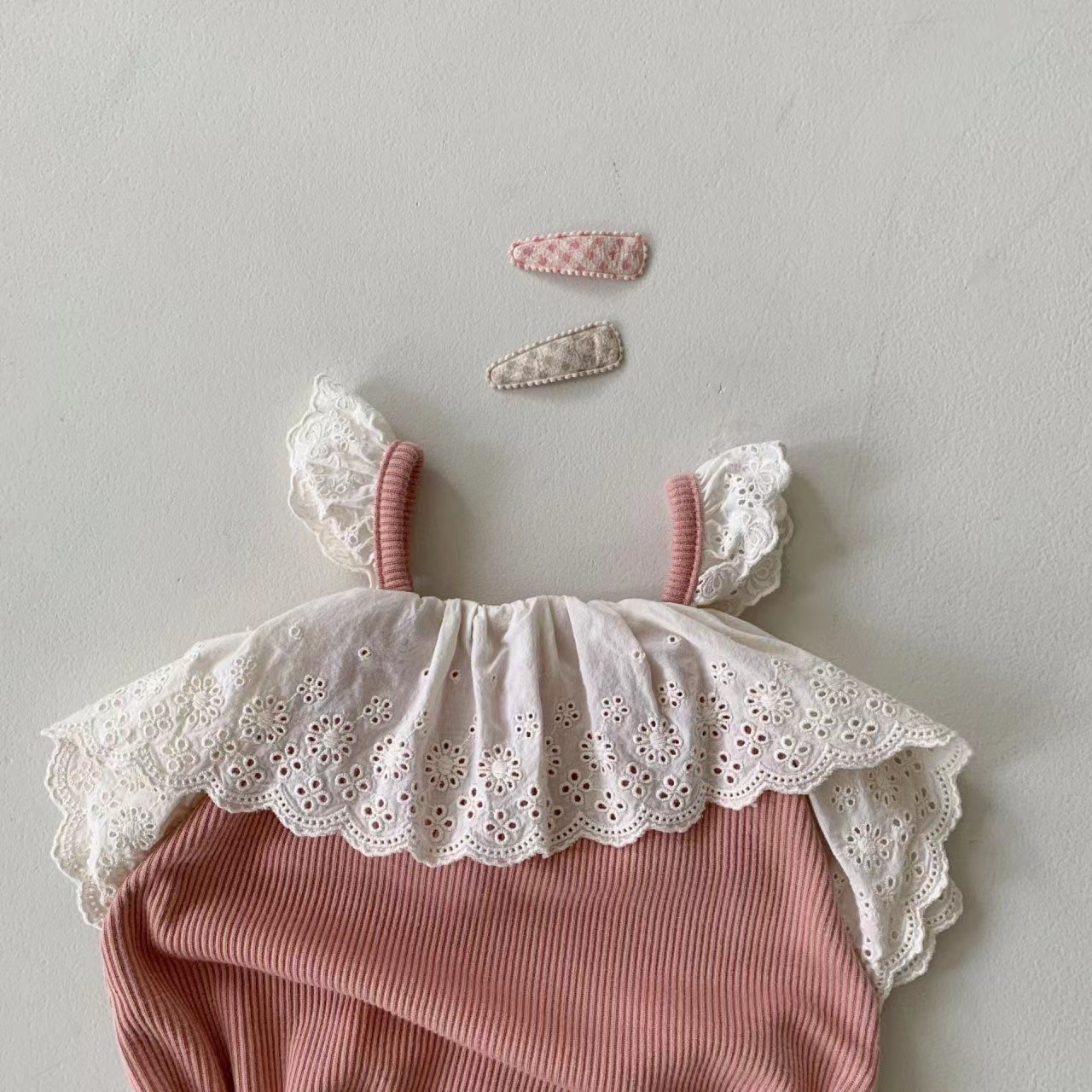 INS Summer Baby’s Lace Sling One-piece Harper Baby Girl’s Hollow-out Ruffled Princess Vest Climbing Suit