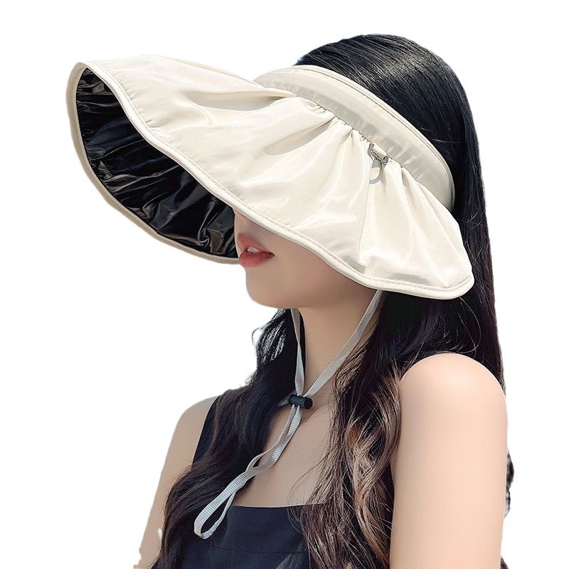 Ins Summer Black Rubber Sunscreen Shell Hat Outdoor Portable Hair Band Sunscreen Hat Women’s Beach Big Brim Hat