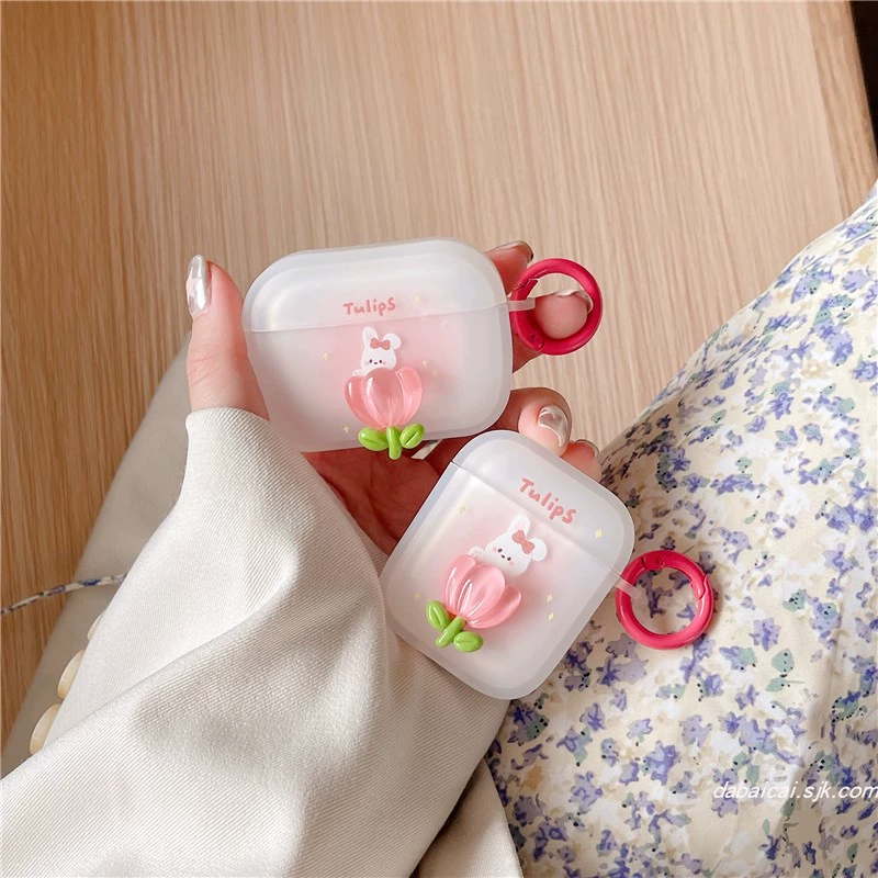 ins summer blooming flowers rabbit suitable for airpods3 protective case airpods2 headphone case pro second generation apple third generation protective case cute cartoon new wireless bluetooth hook frosted