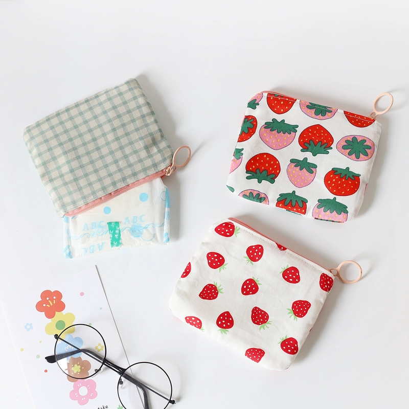INS summer cute strawberry fruit floral coin purse female small and versatile student girl heart coin storage bag