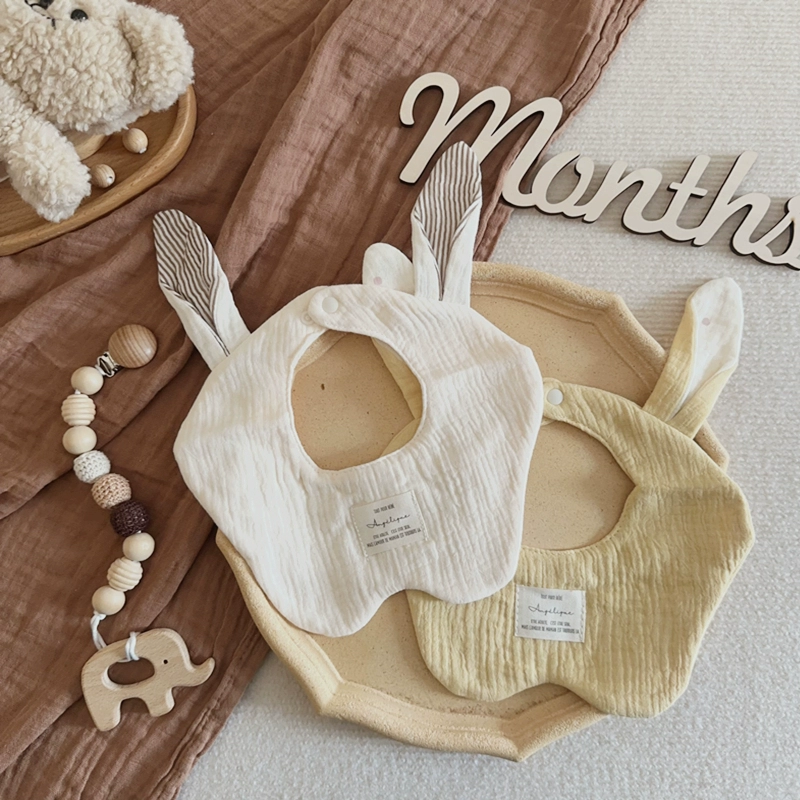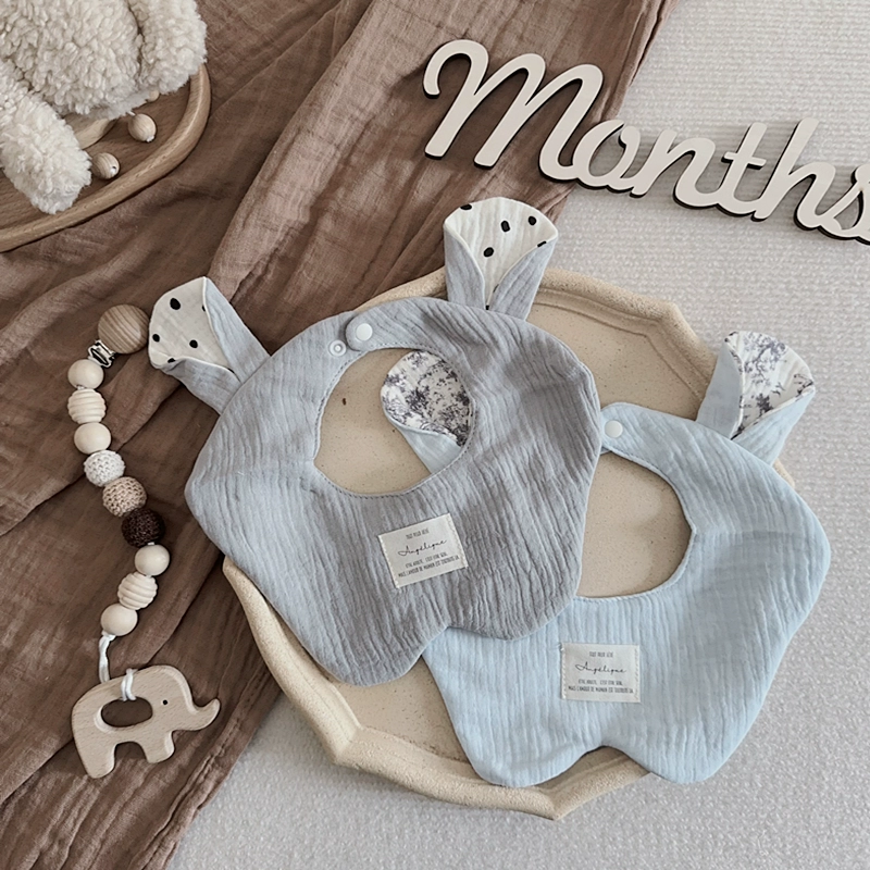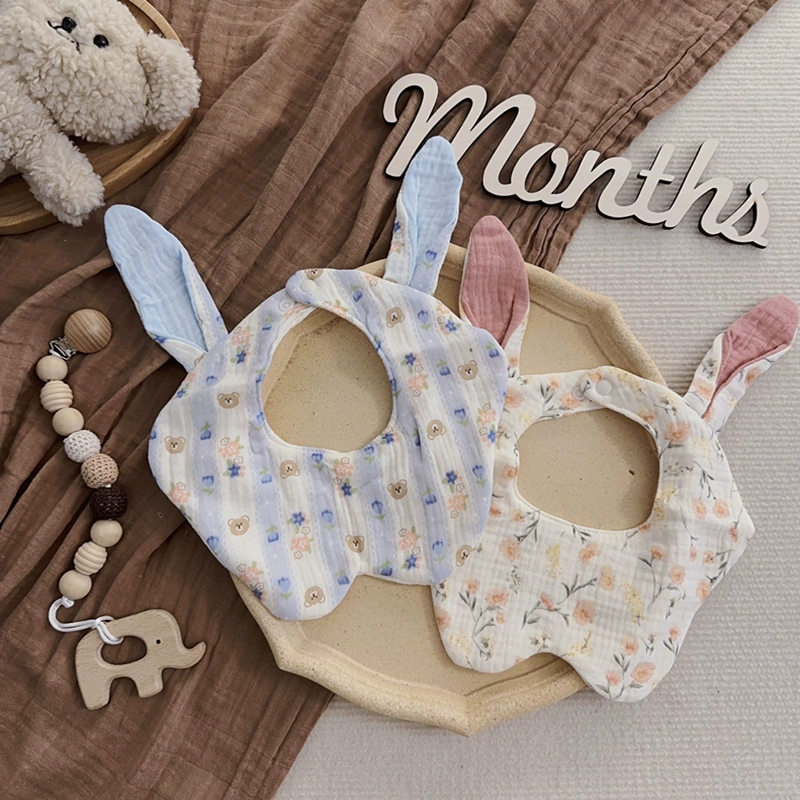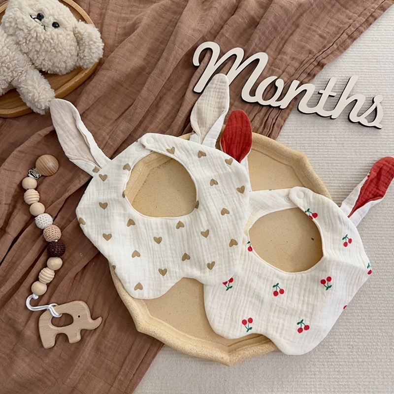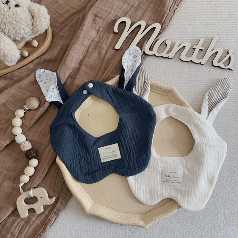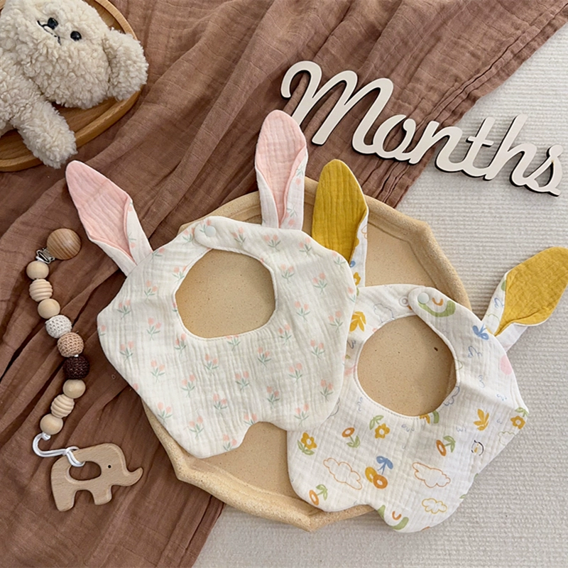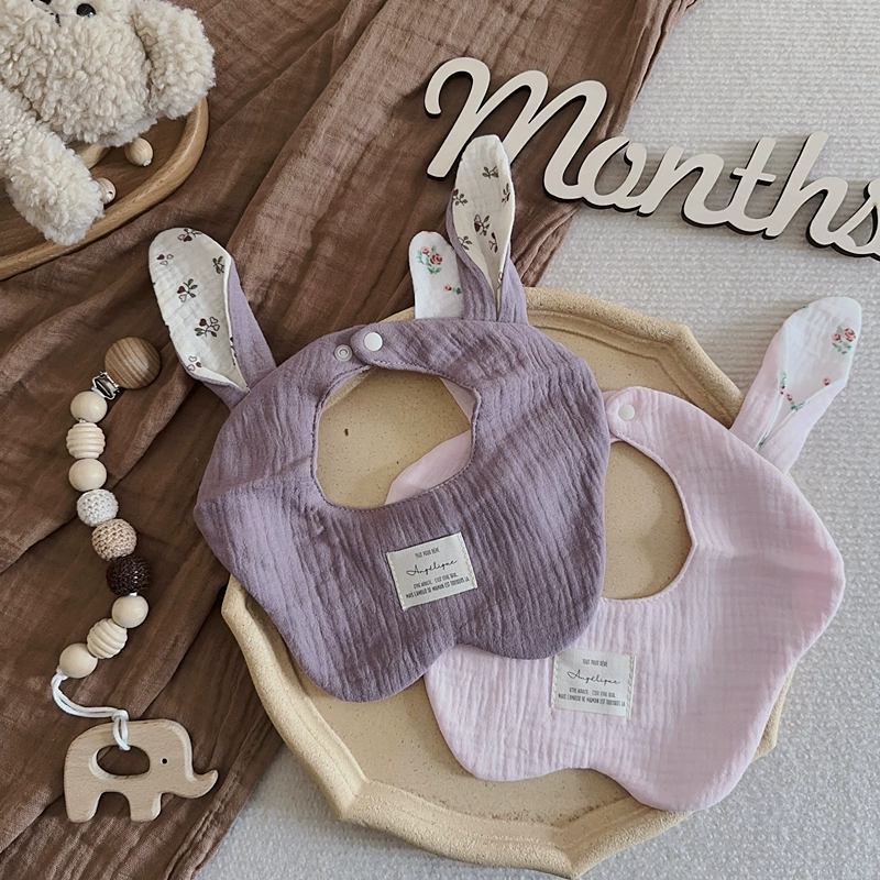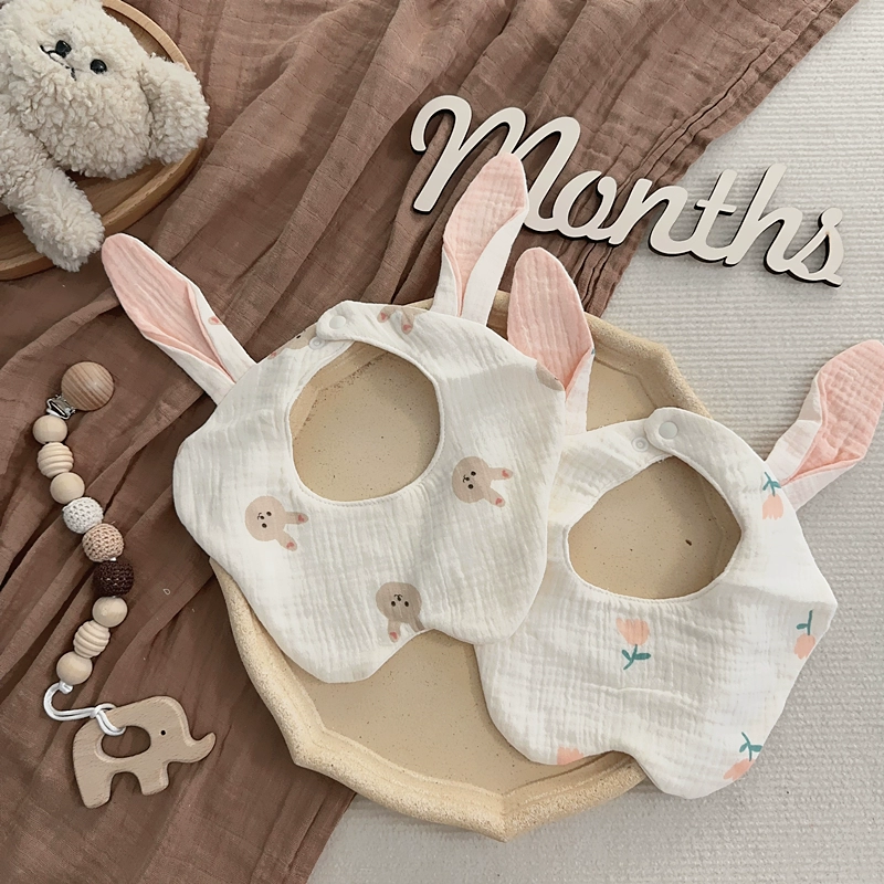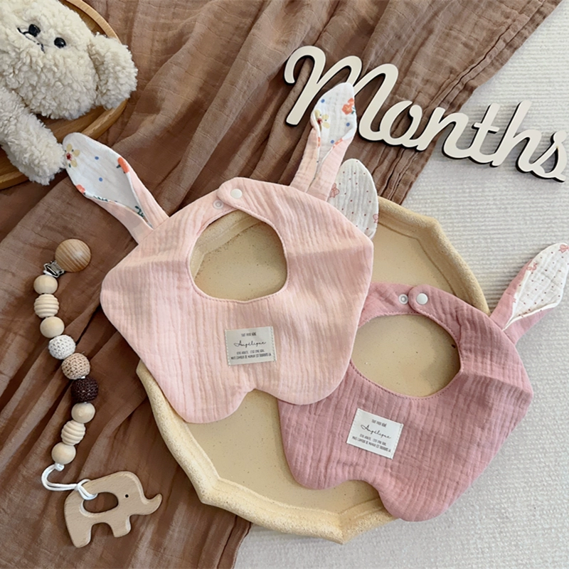 ins summer Korean cute rabbit ears saliva towel baby bib anti-vomiting pure cotton gauze solid color bib thin