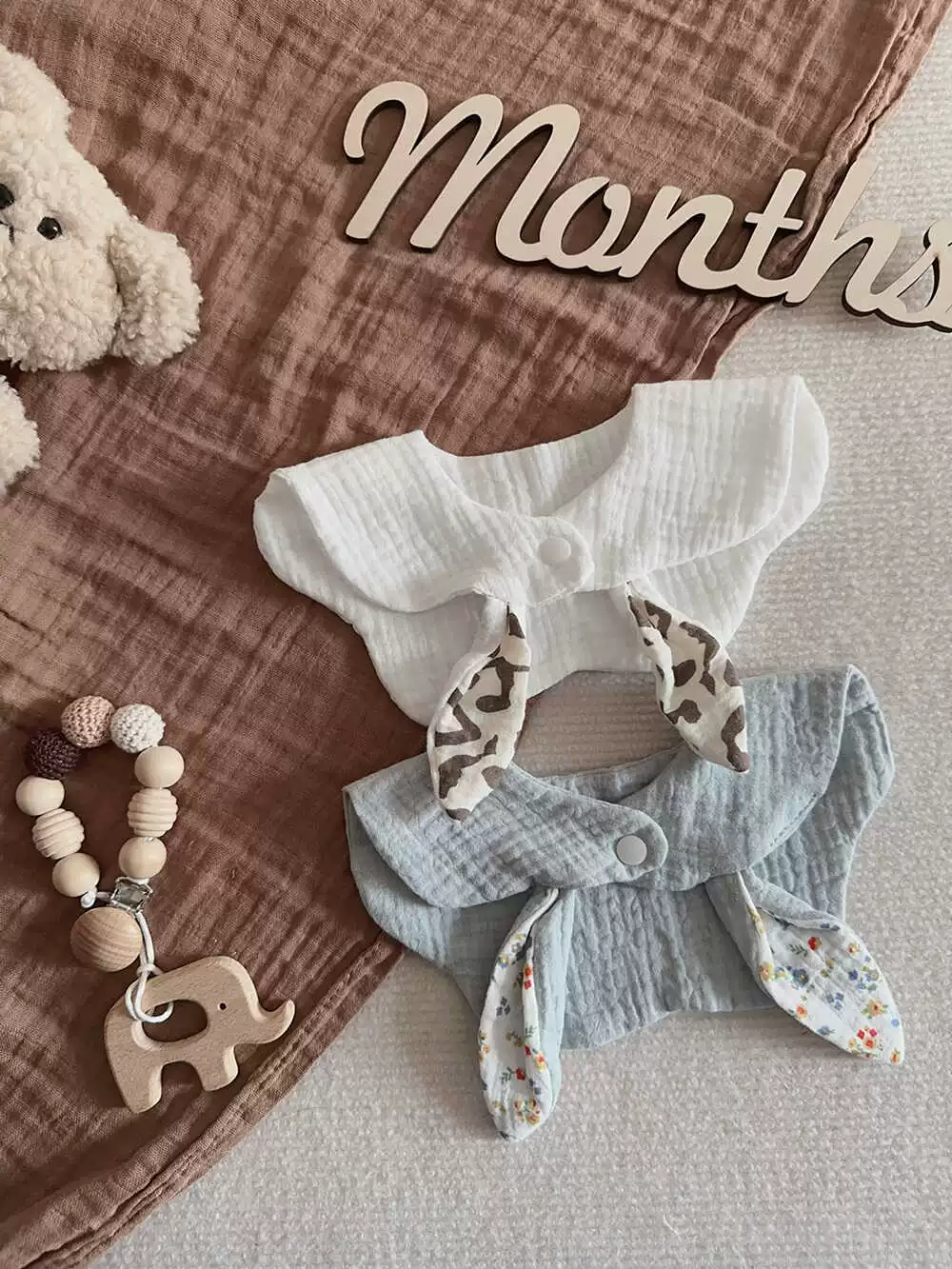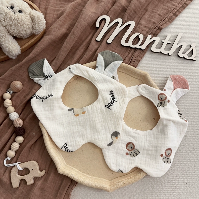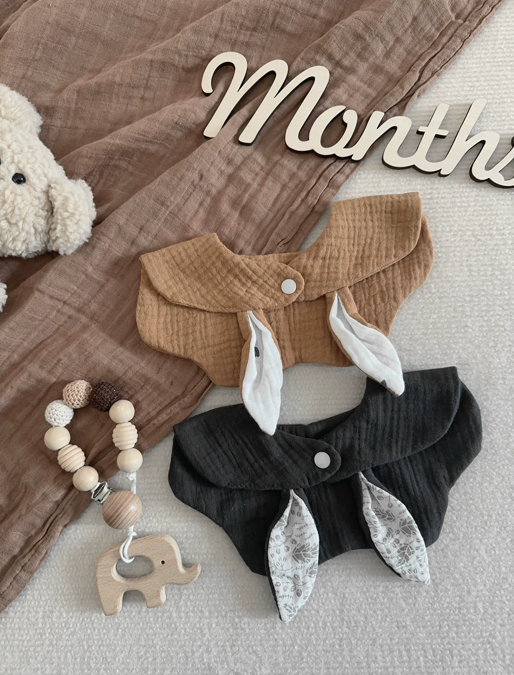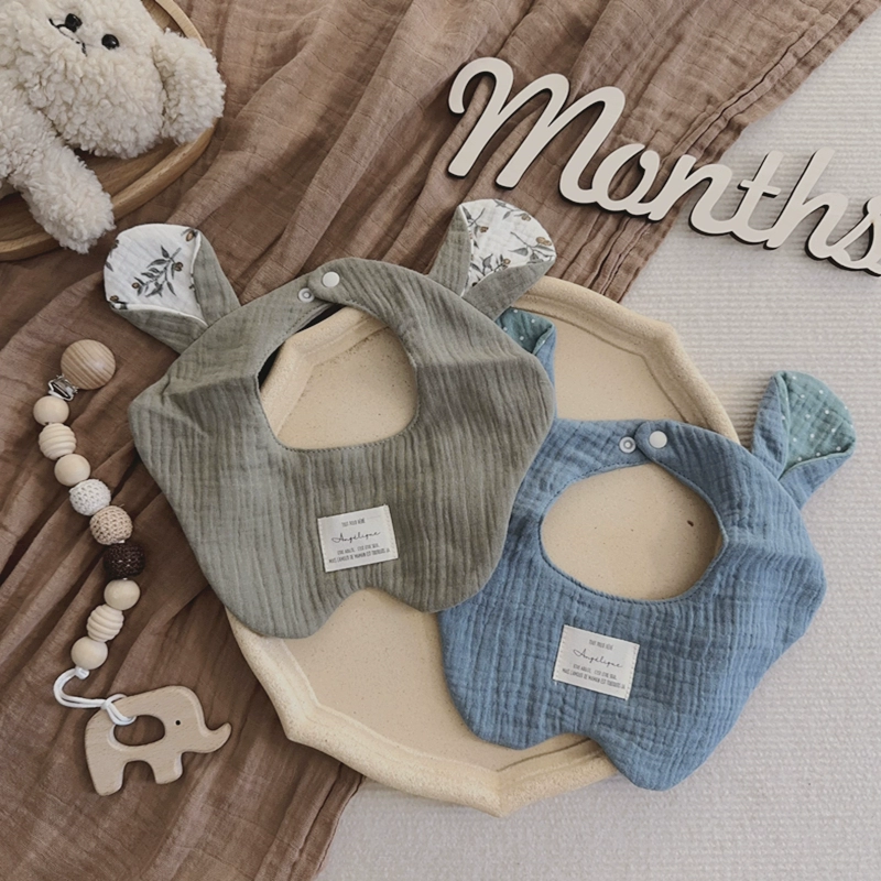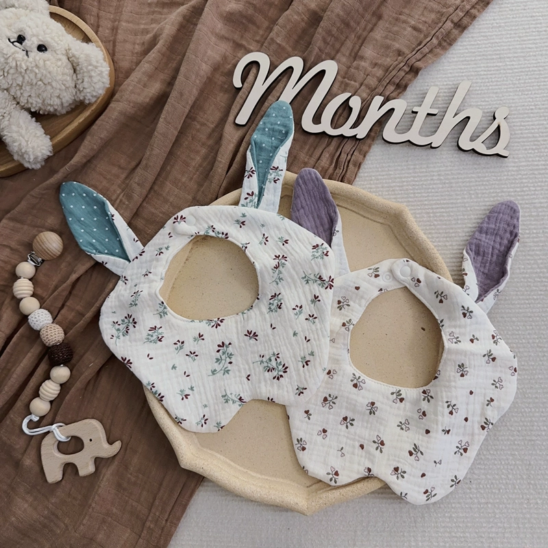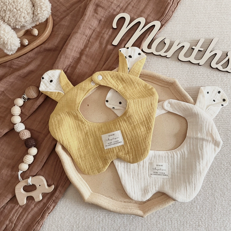ins summer Korean cute rabbit ears saliva towel baby bib anti-vomiting pure cotton gauze solid color bib thin