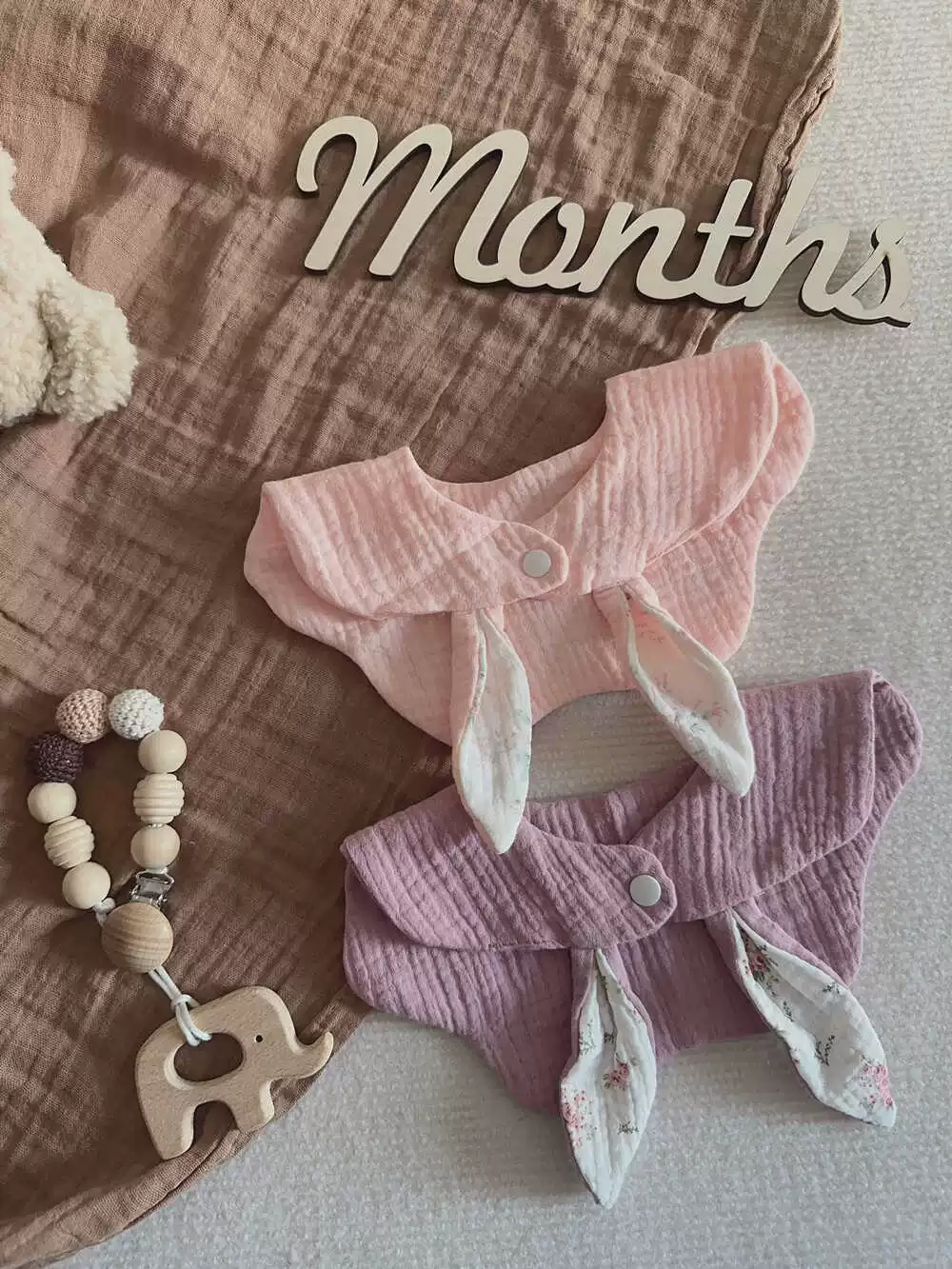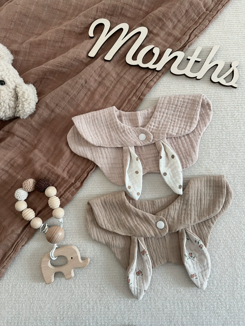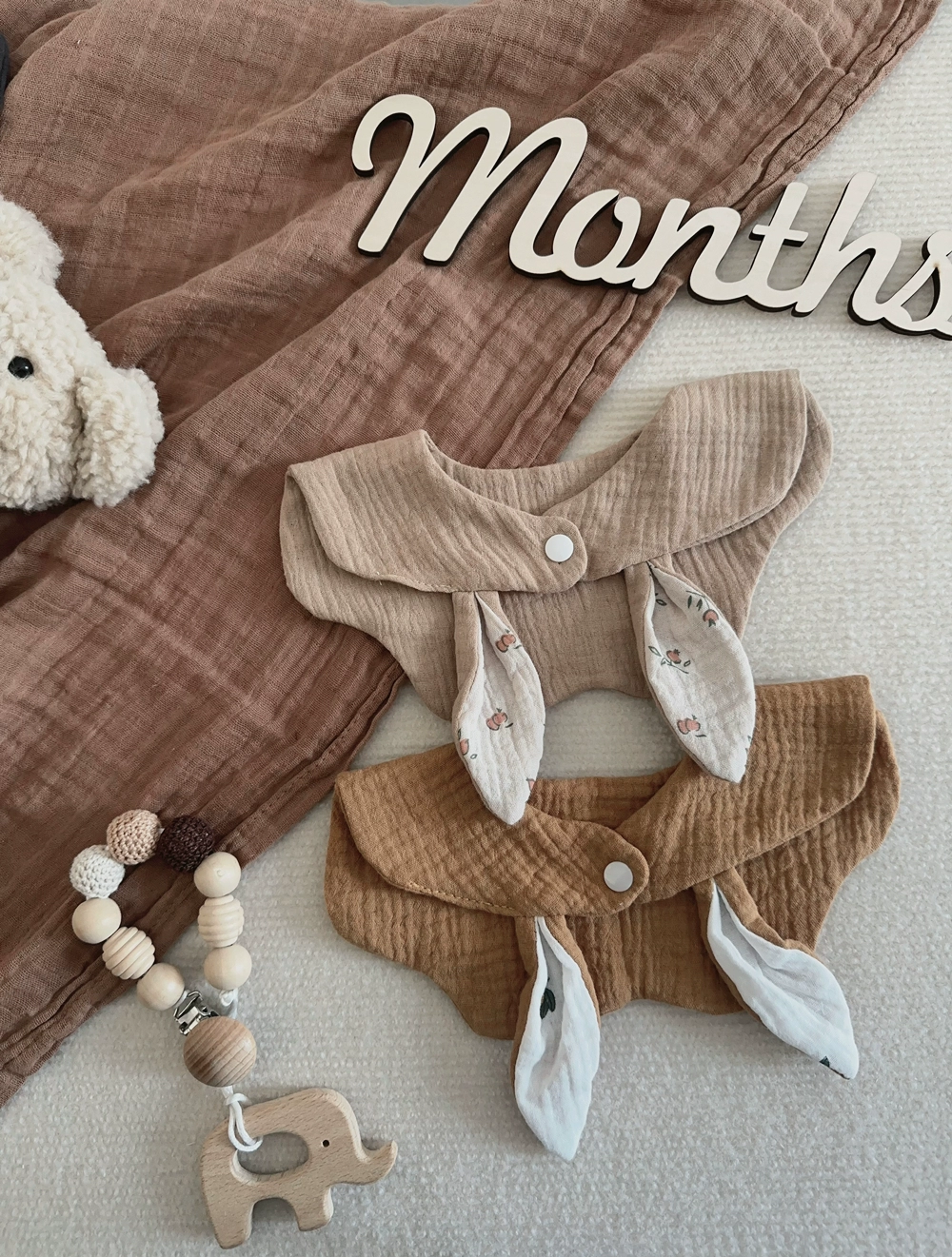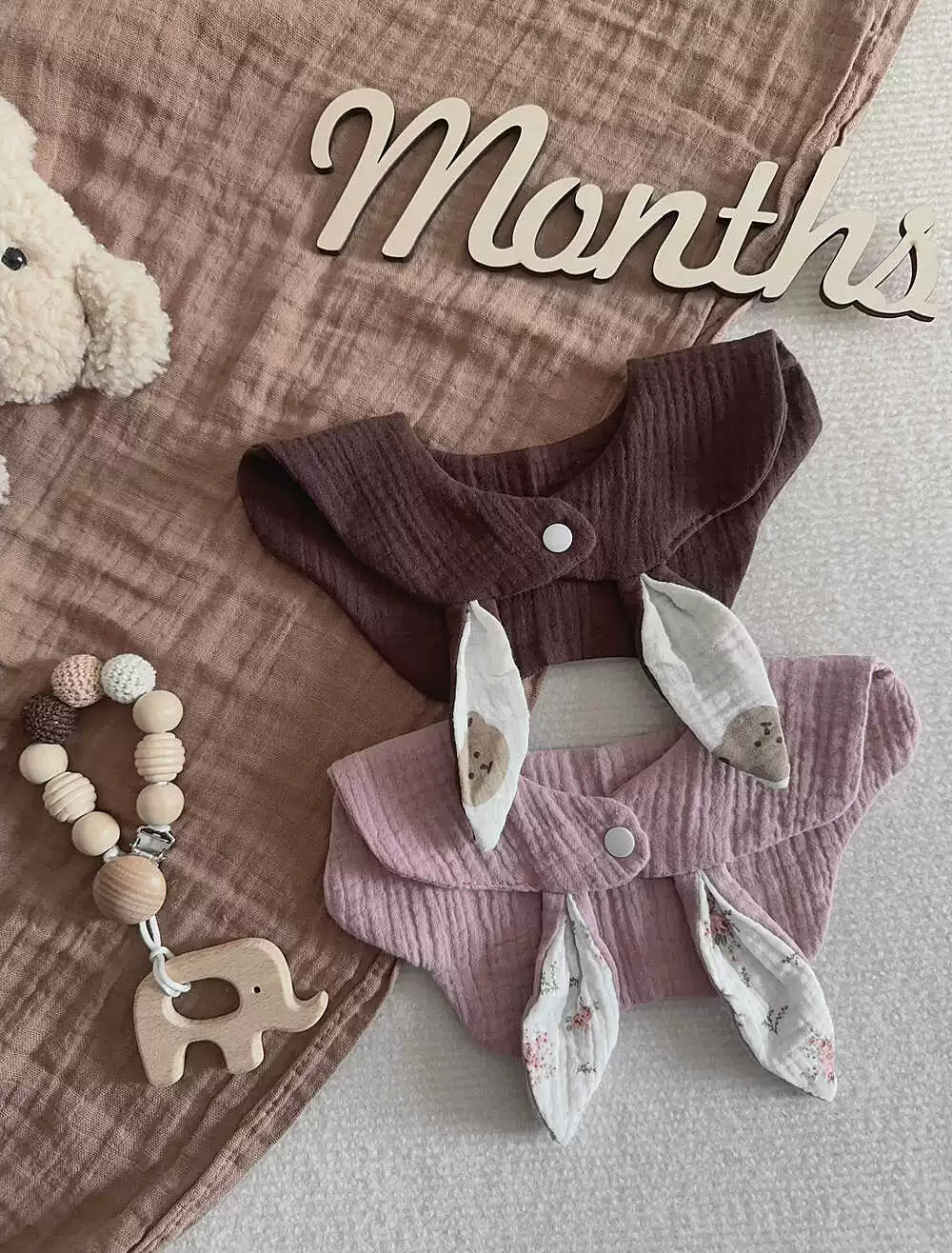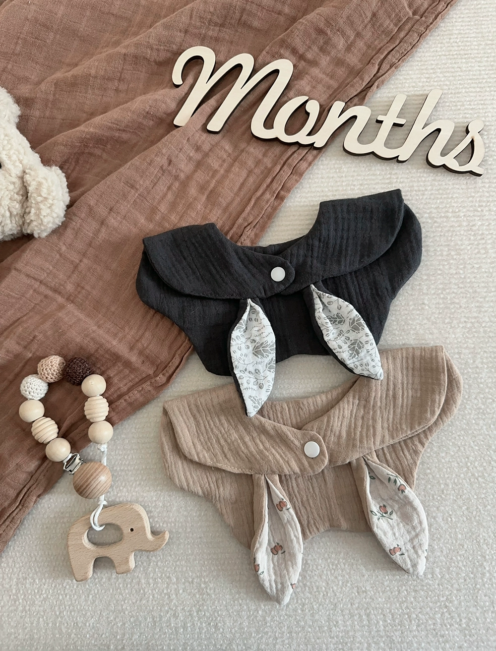 ins summer Korean cute rabbit ears saliva towel baby bib anti-vomiting pure cotton gauze solid color bib thin