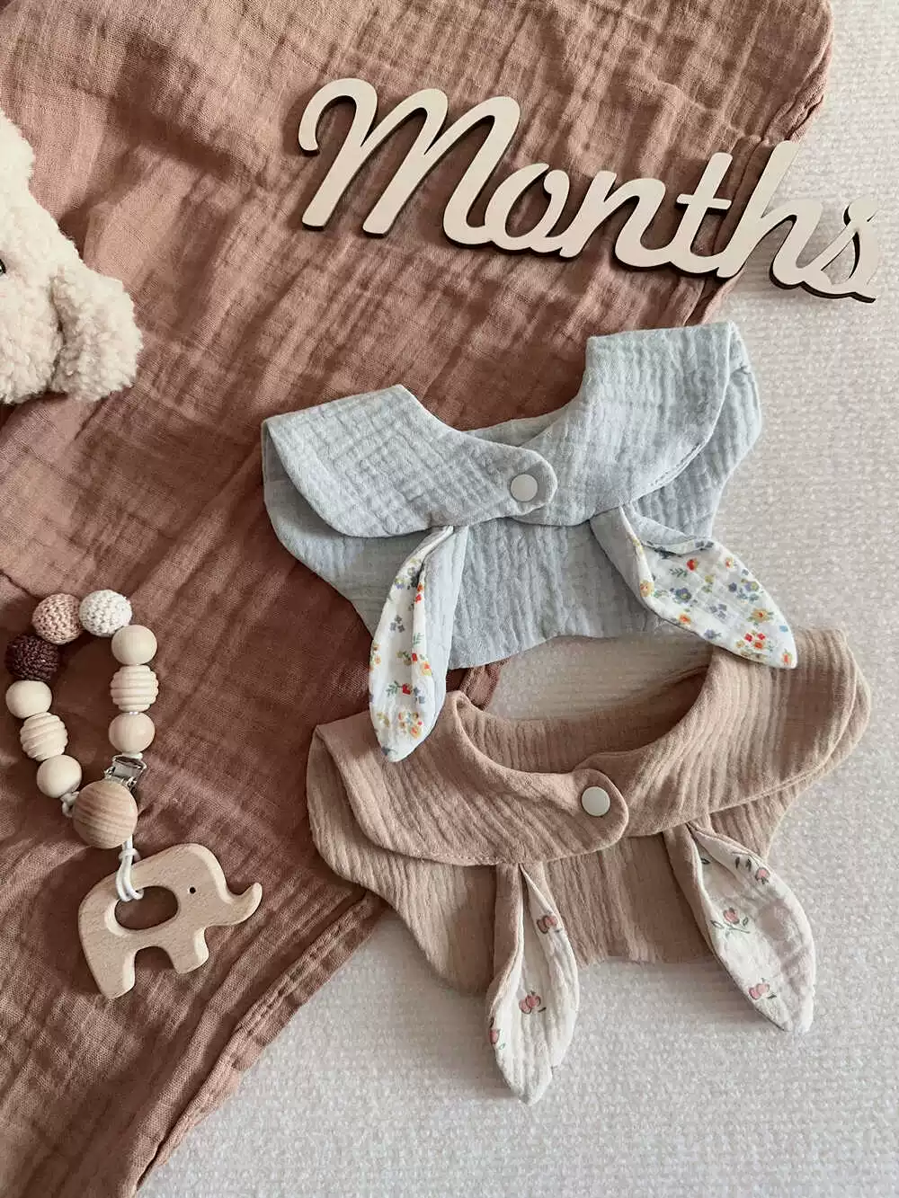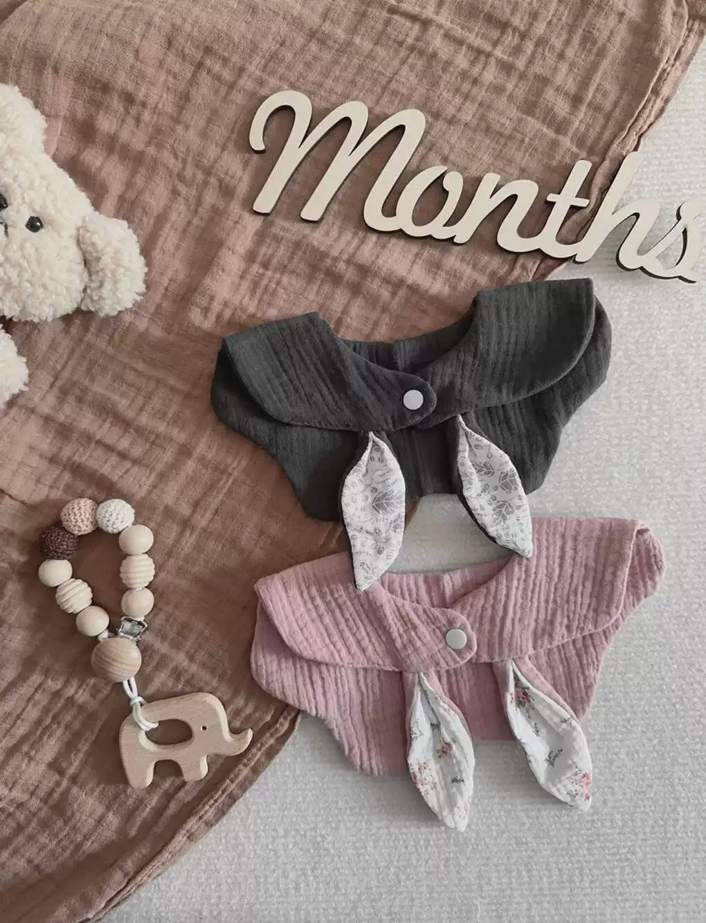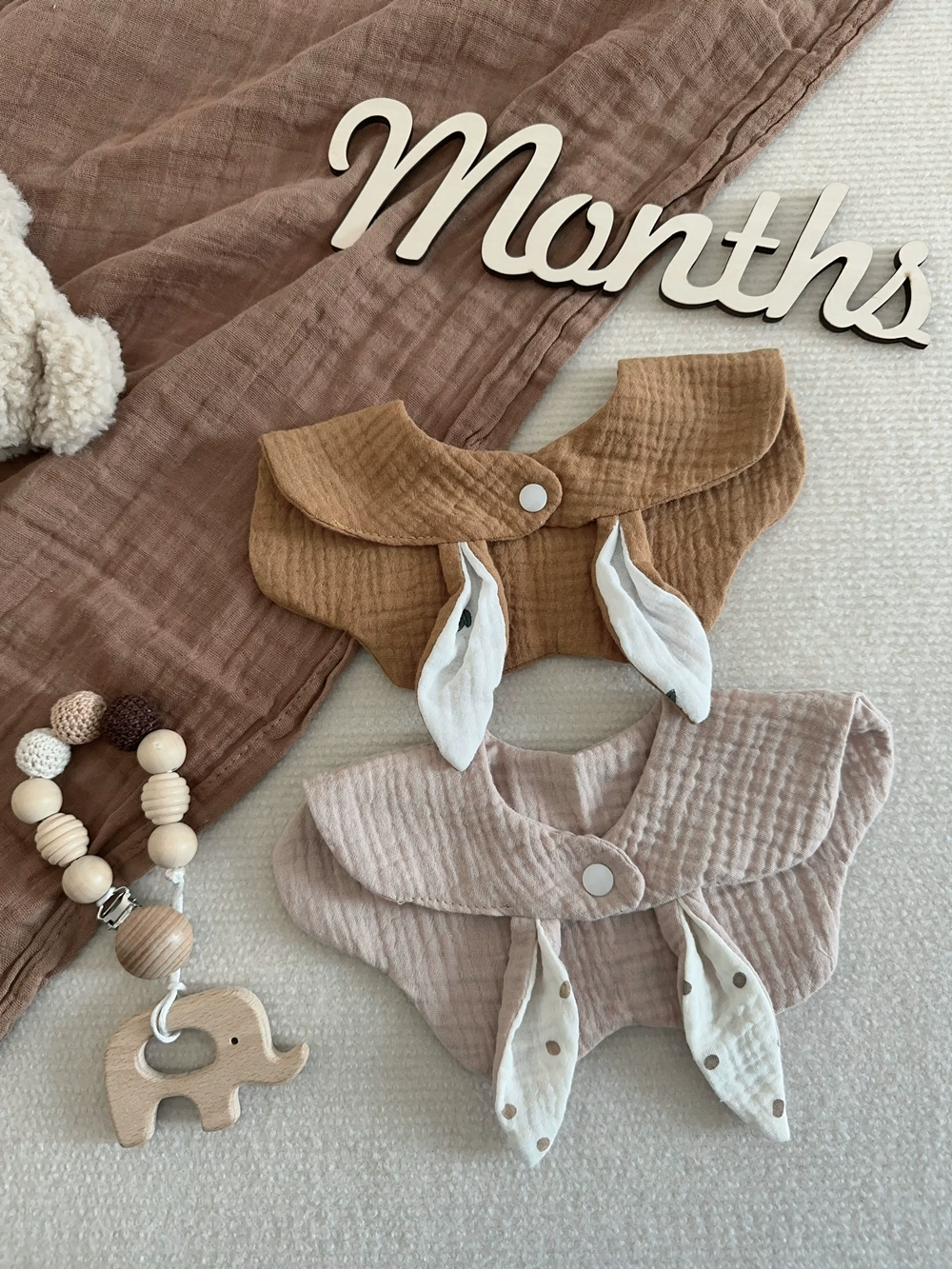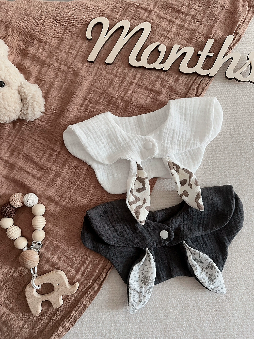 ins summer Korean cute rabbit ears saliva towel baby bib anti-vomiting pure cotton gauze solid color bib thin