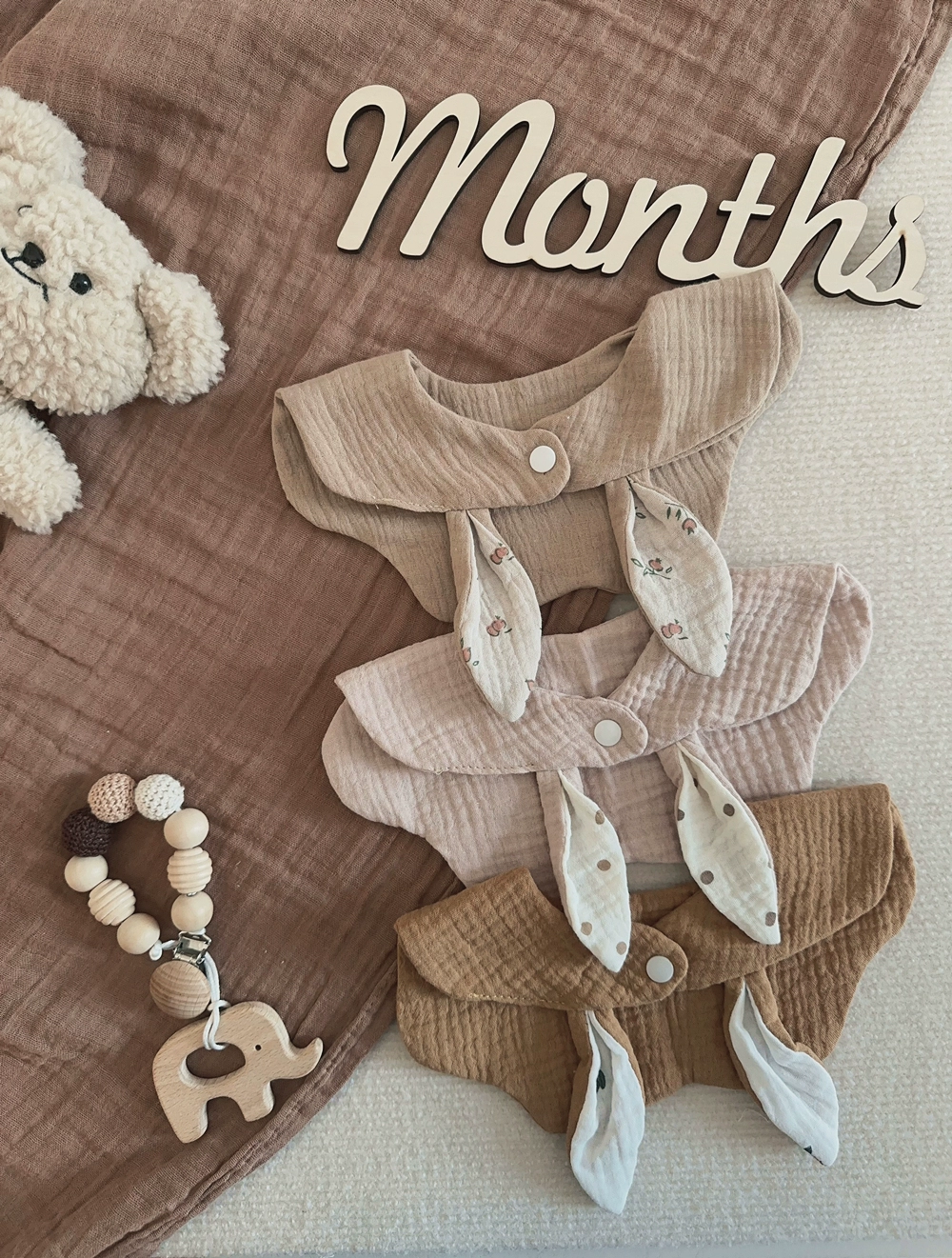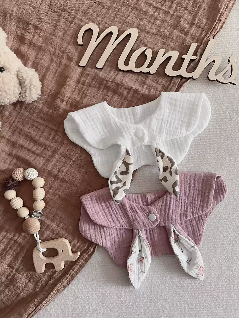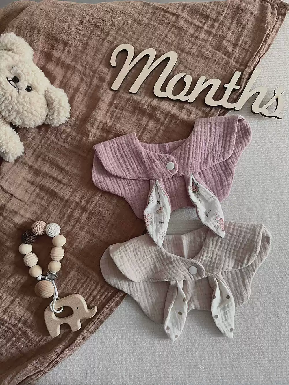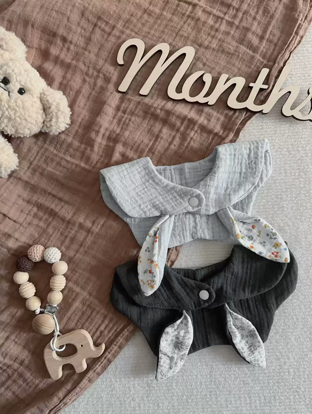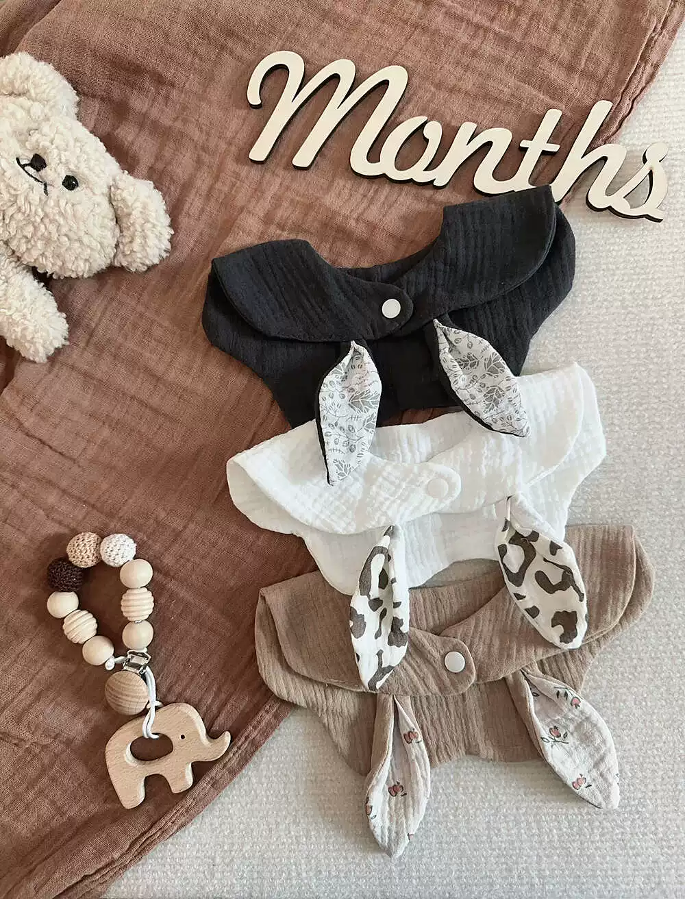 ins summer Korean cute rabbit ears saliva towel baby bib anti-vomiting pure cotton gauze solid color bib thin