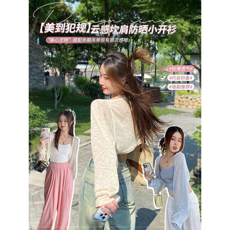 Ins Summer Thin Sunscreen Knitted Cardigan Women's Halter Skirt Outerwear Air Conditioning Blouse Shawl Stacked Waistcoat