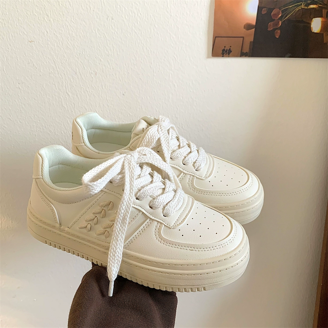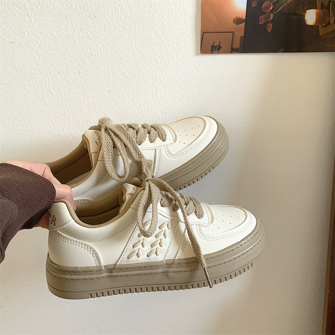 ins super hot white shoes for women 2024 spring new niche retro wheat sneakers trendy student thick-soled casual shoes
