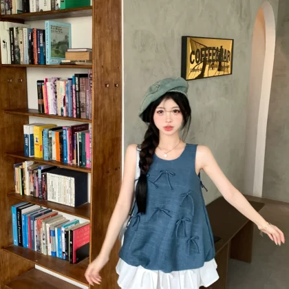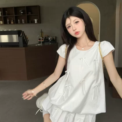 ins three-dimensional bow pleated skirt fashion suit