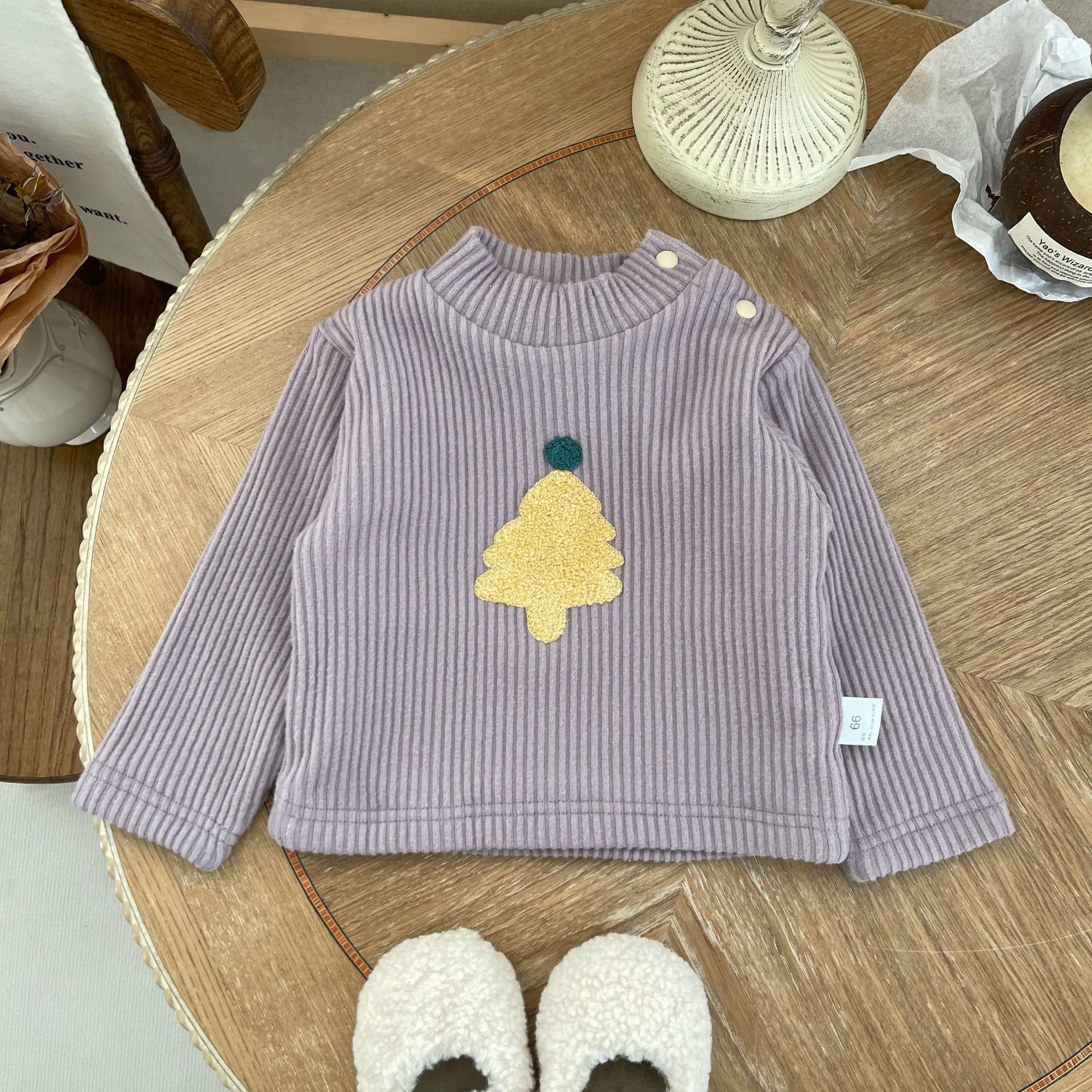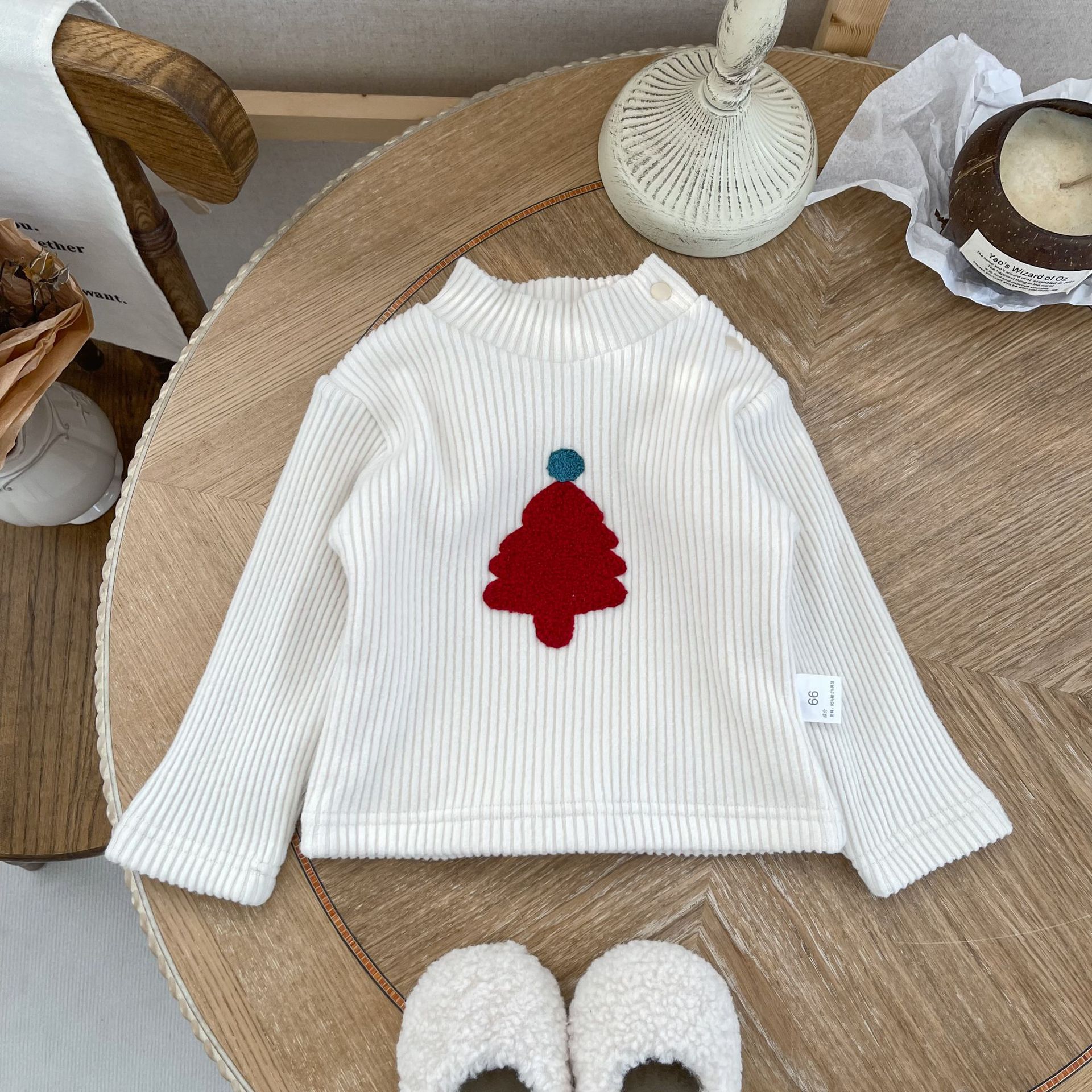 | nameOriginal | INS winter double layer fleece-lined baby embroidered Christmas tree long sleeve half turtleneck buckle bottoming shirt |