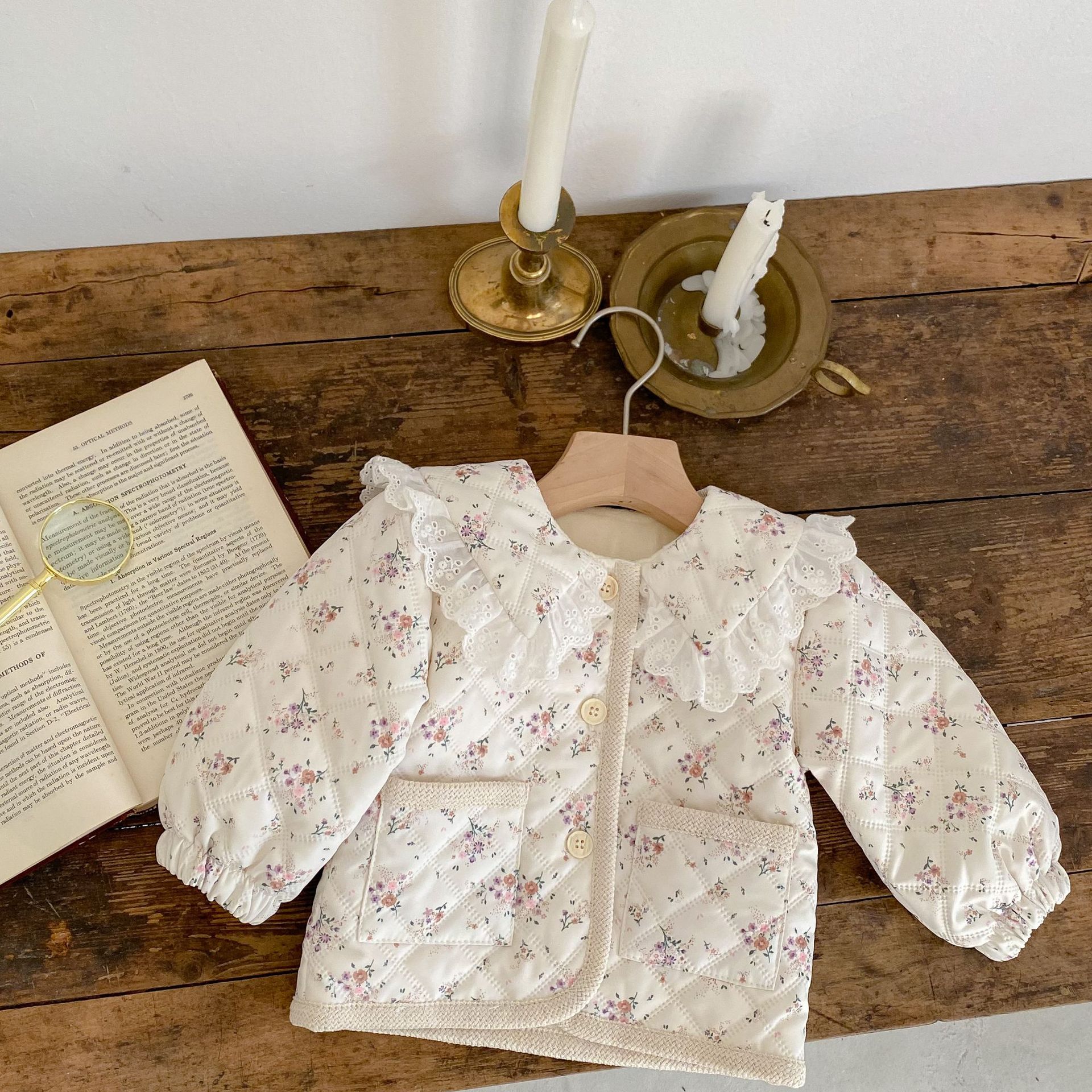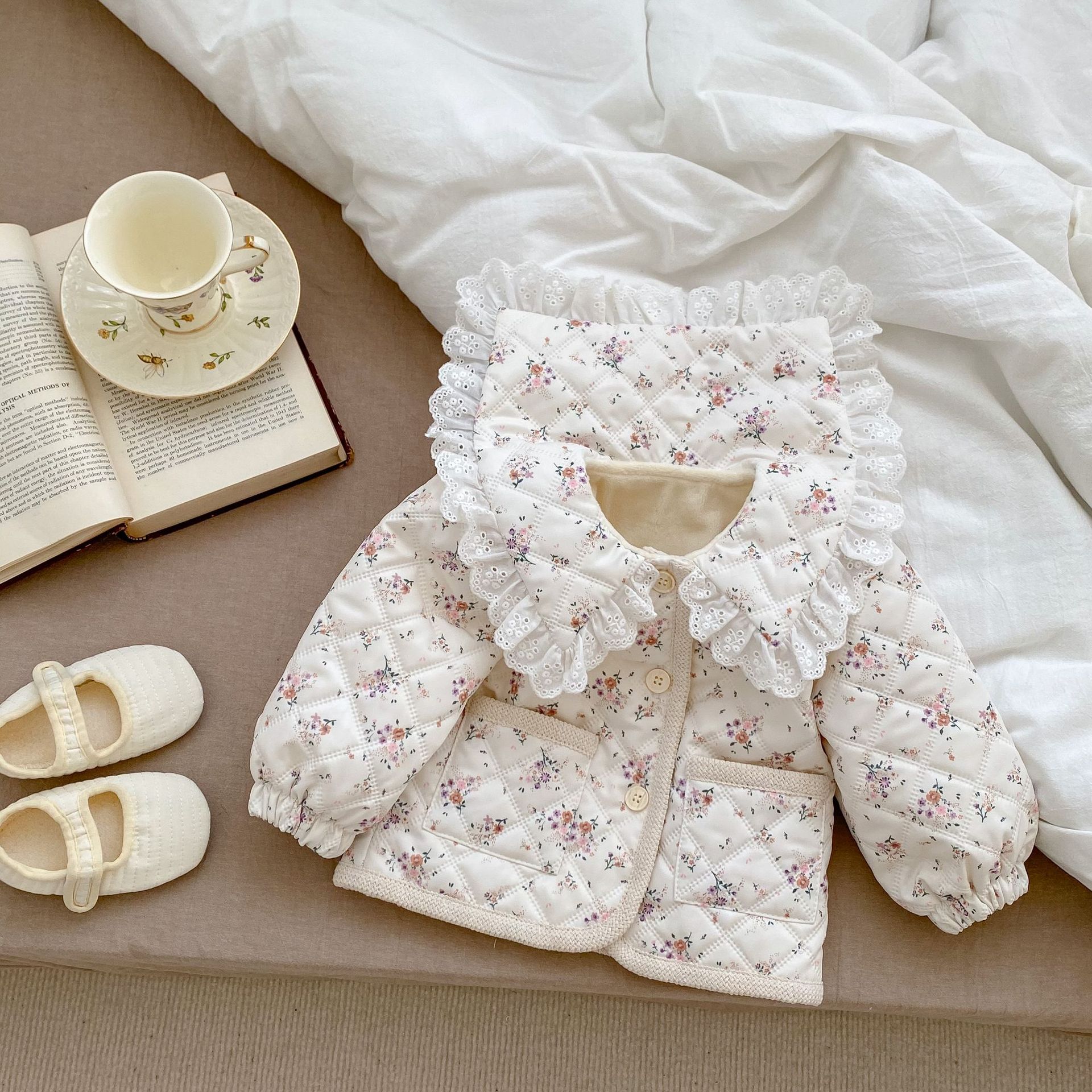 | nameOriginal | INS winter girls' baby fleece-lined floral coat Western style lace lapel cotton-padded coat long sleeve thickened cardigan cotton-padded coat |