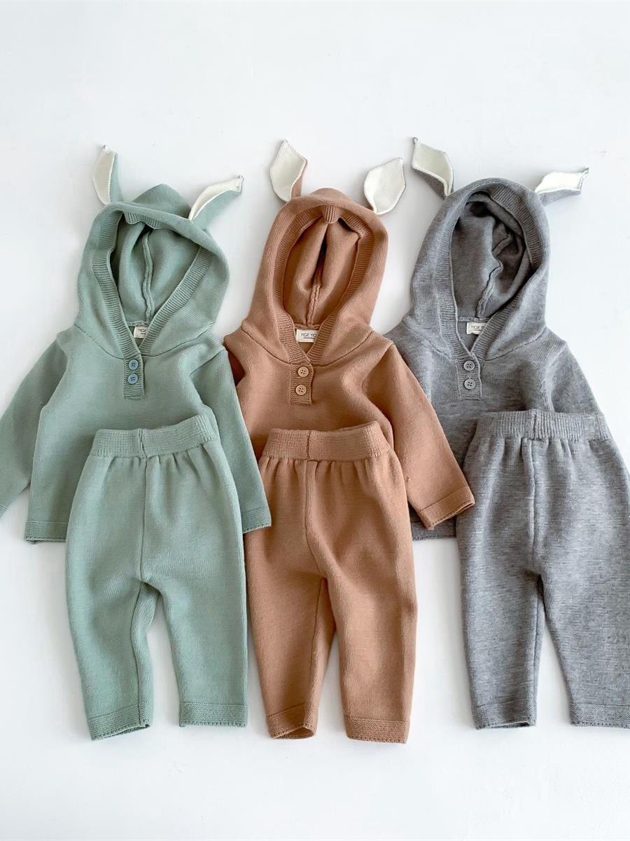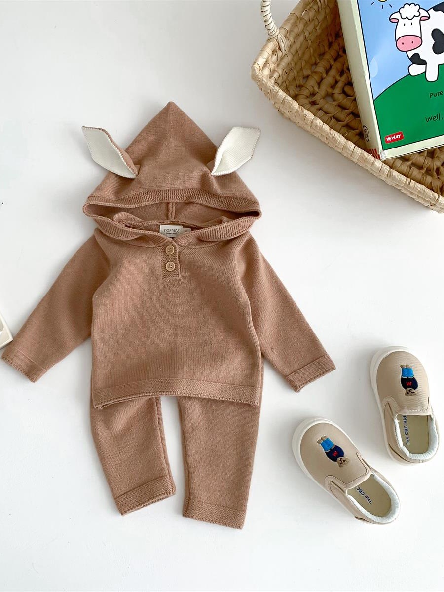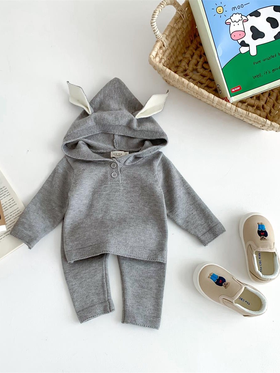 | nameOriginal | ins2023 autumn and winter baby hooded sweater set newborn boys and girls baby solid color rabbit hat two-piece set |
