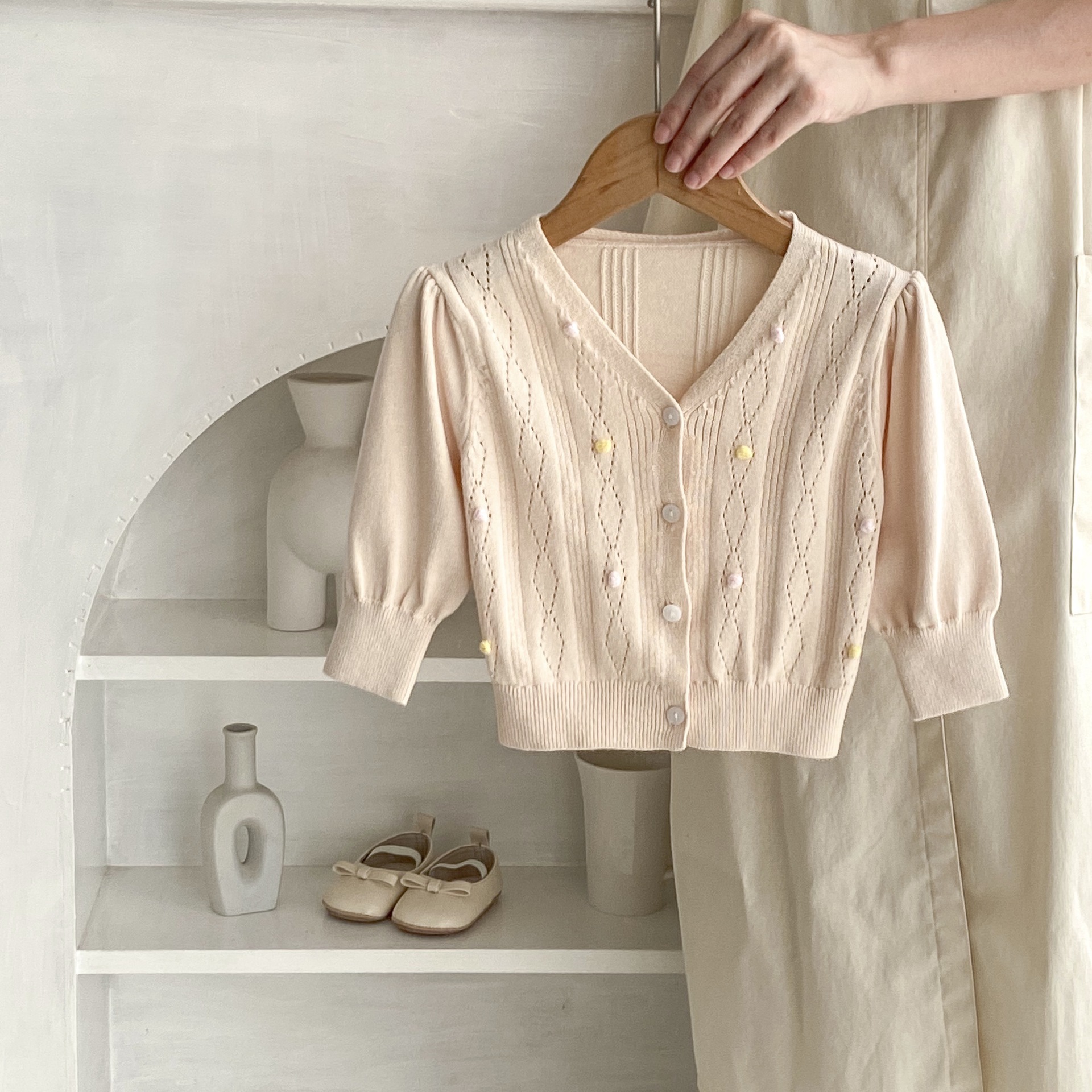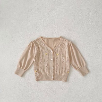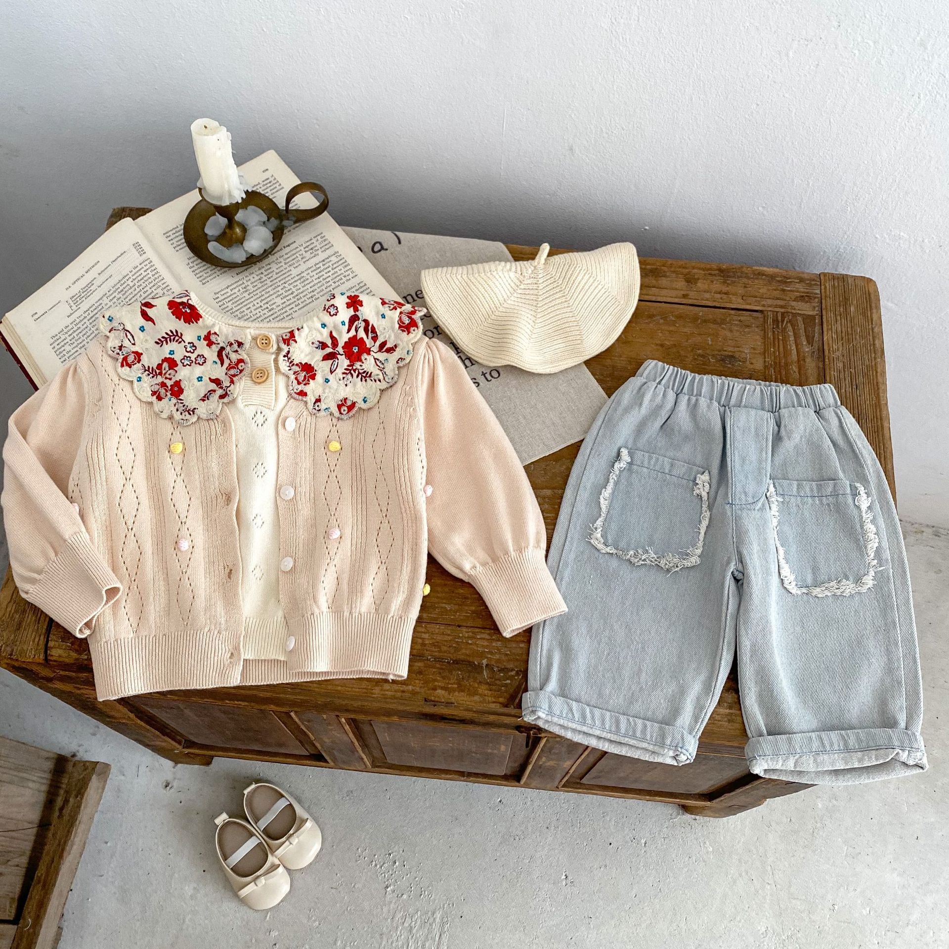 | nameOriginal | ins2024 autumn clothing 0-3 years old baby girl V-neck knitted cardigan hand-made contrast color ball soft sleeve small coat |