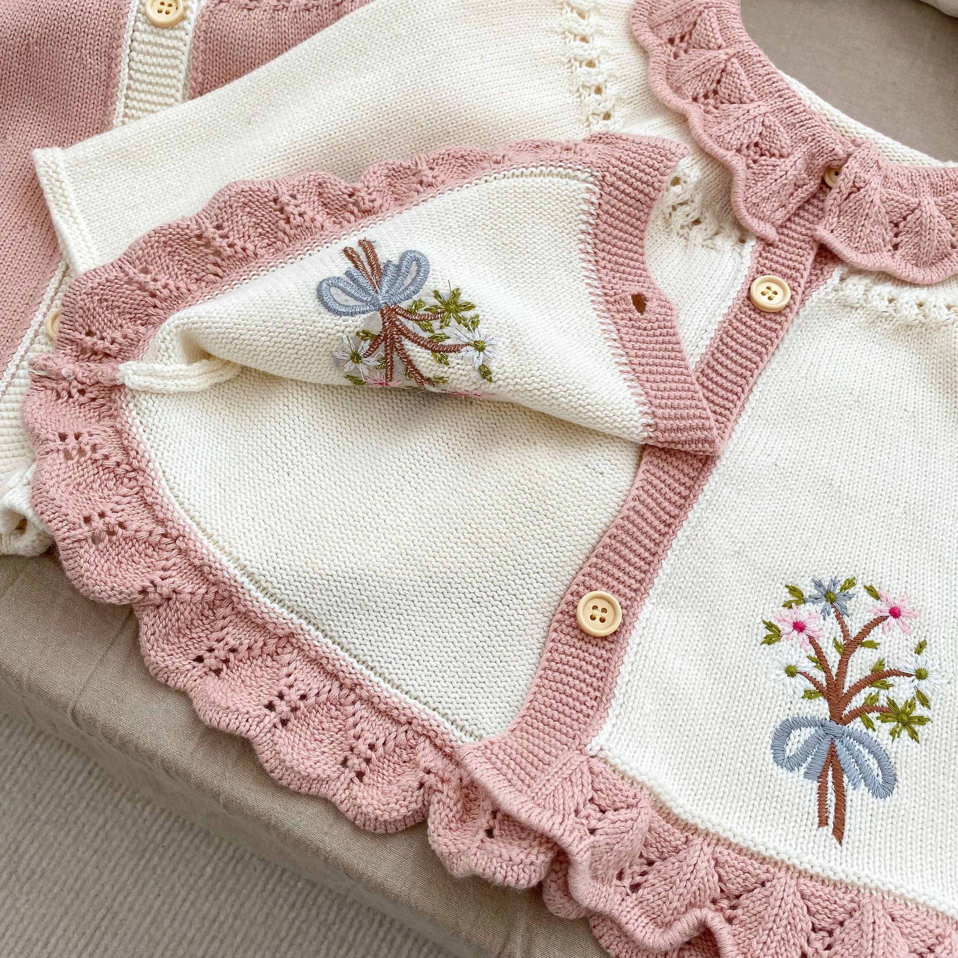 | nameOriginal | ins2024 Spring and Autumn Baby Girl Vintage Embroidered Cardigan Jacket Western-style Ruffled Laps A- line Long Sweater |