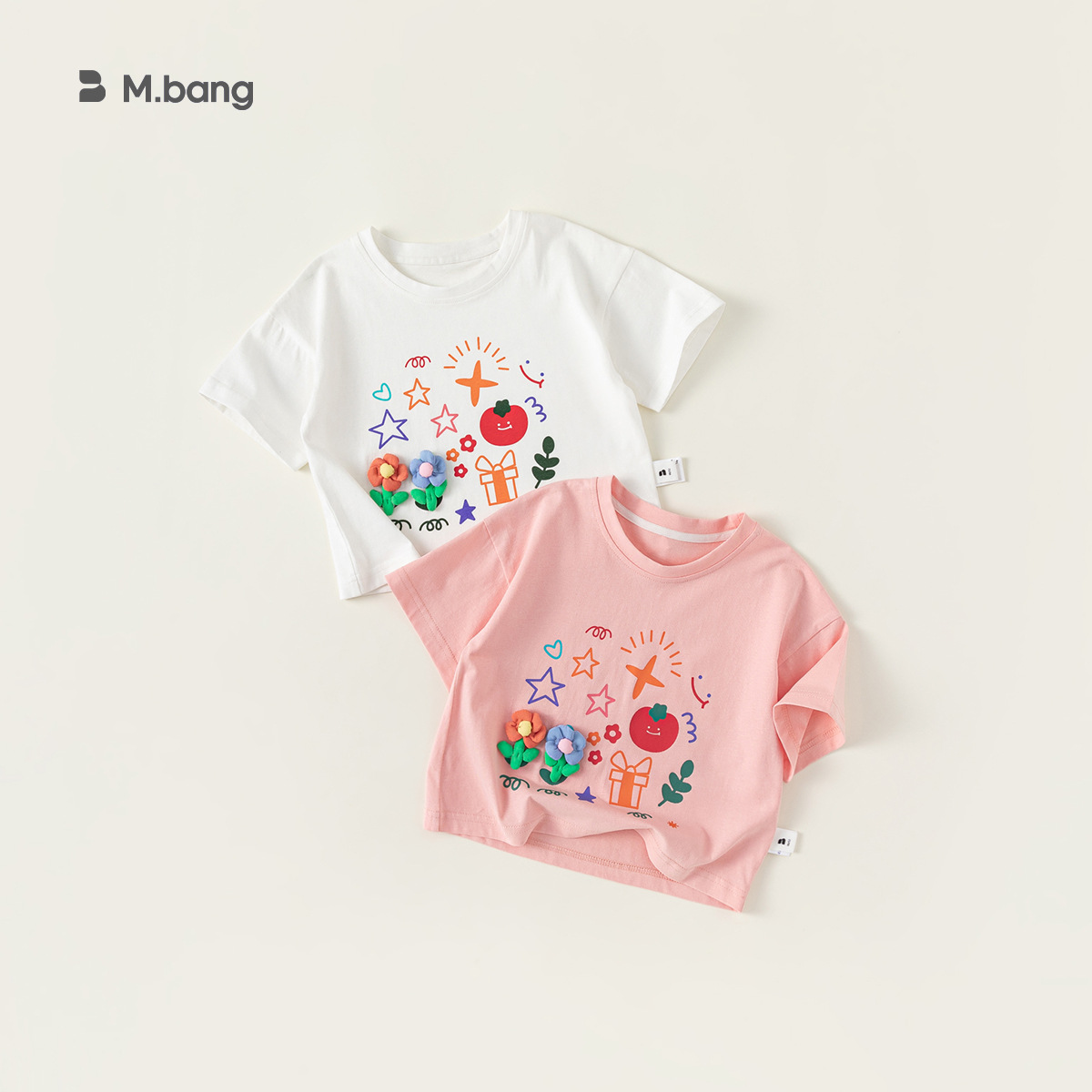 INSbobo girls T-shirt three-dimensional flower top summer children’s clothing Korean children’s short sleeve pullover XY24089