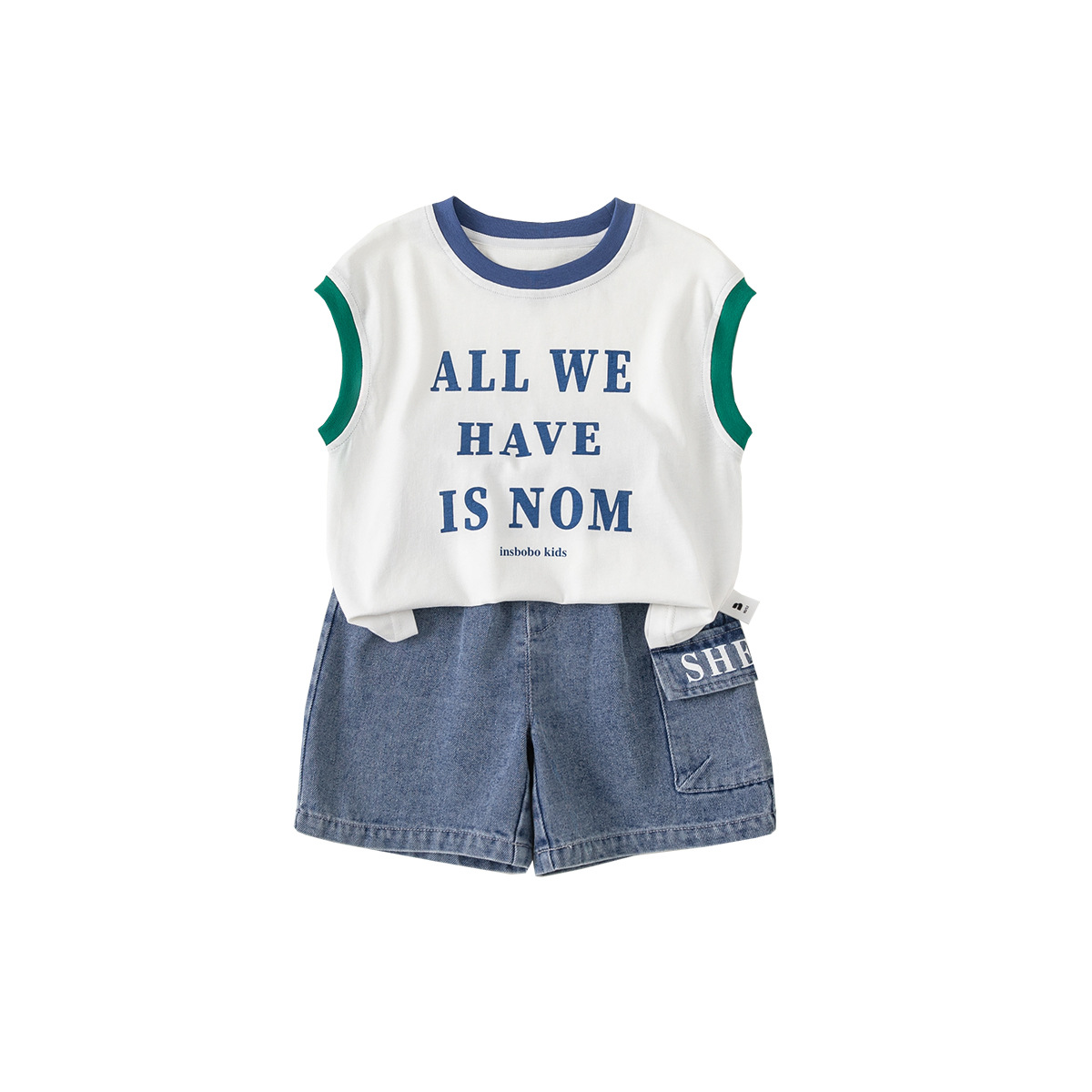| nameOriginal | INSbobo2024 summer boys suit children's letter vest jeans Korean style two-piece set XT84050 |